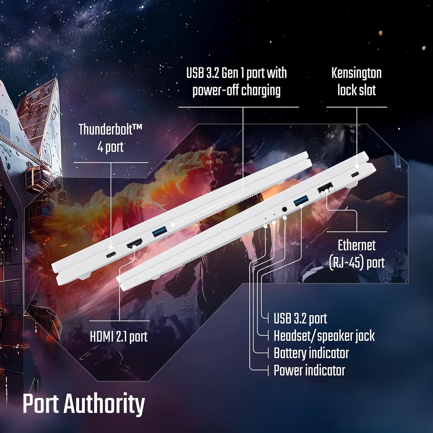 From Thunderbolt 4 to HDMI 2.1 and power-off USB charging, this laptop’s got more connections than you need. Wi-Fi and Bluetooth 5.1? Of course. It’s built to plug, play, and slay