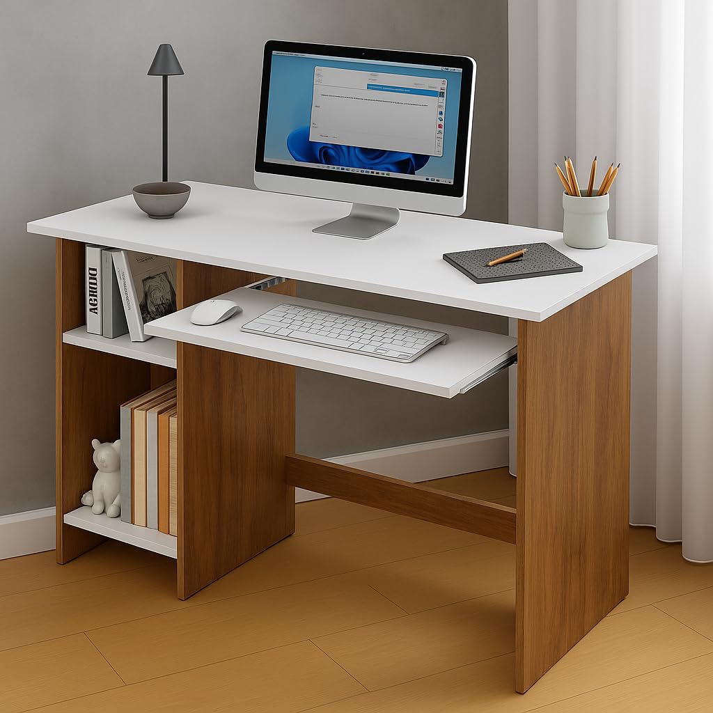Built-in Storage Shelves: Side and bottom open shelves offer smart storage solutions for books, files, and accessories, keeping everything organized and within easy reach.