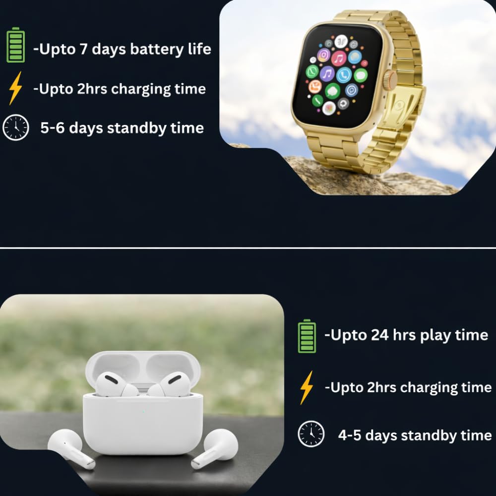 1. Premium Smart Watch + Earbuds Combo Get a complete smartwatch with earbuds package in one box—perfect for workouts, travel, and daily calls without carrying extra devices.