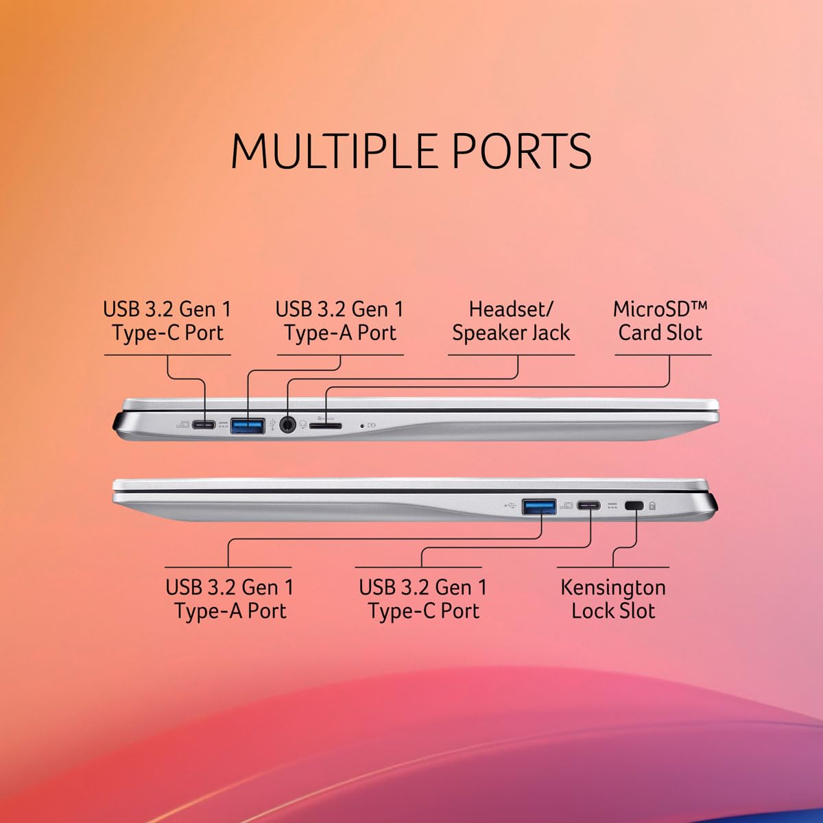 Efficient Performance: Powered by an Celeron N4500 Dual-Core Processor with Burst Technology, this Chromebook delivers seamless performance for your everyday computing needs, with speeds of up to 2.8GHz and 4MB L2 cache to handle multitasking effortlessly.