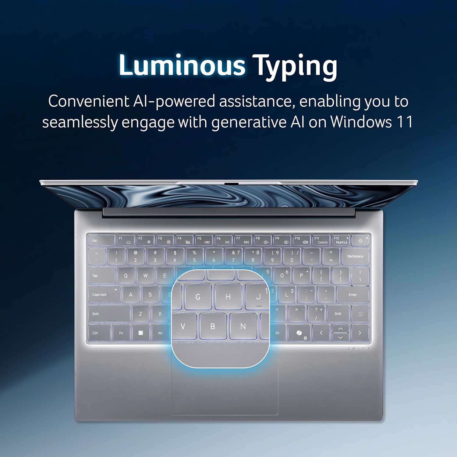 The Swift Lite 14 AI brings you premium performance in a sleek, travel-friendly form. It’s the perfect blend of style, speed, and smarts—ready to match your every move.