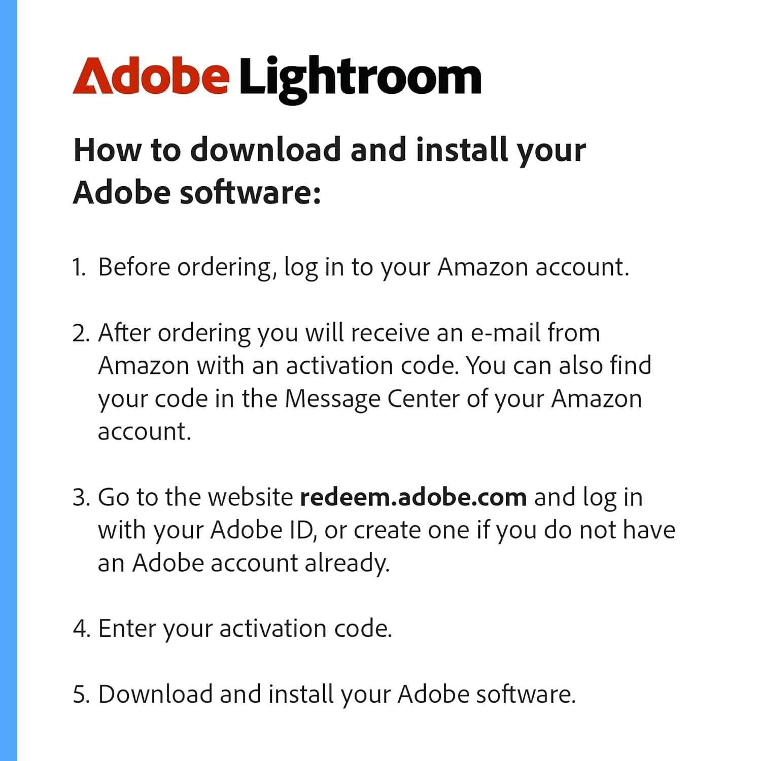 After your purchase, Amazon will send you a link and activation code. Sign on with your Adobe ID or create a new one. Enter the code and download all programs you plan to use.