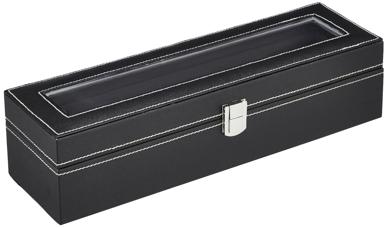 Amazon Basics Unisex Faux Leather Watch Organiser Box with 6 Slots |Watch Organiser with Transparent Lid (Black)