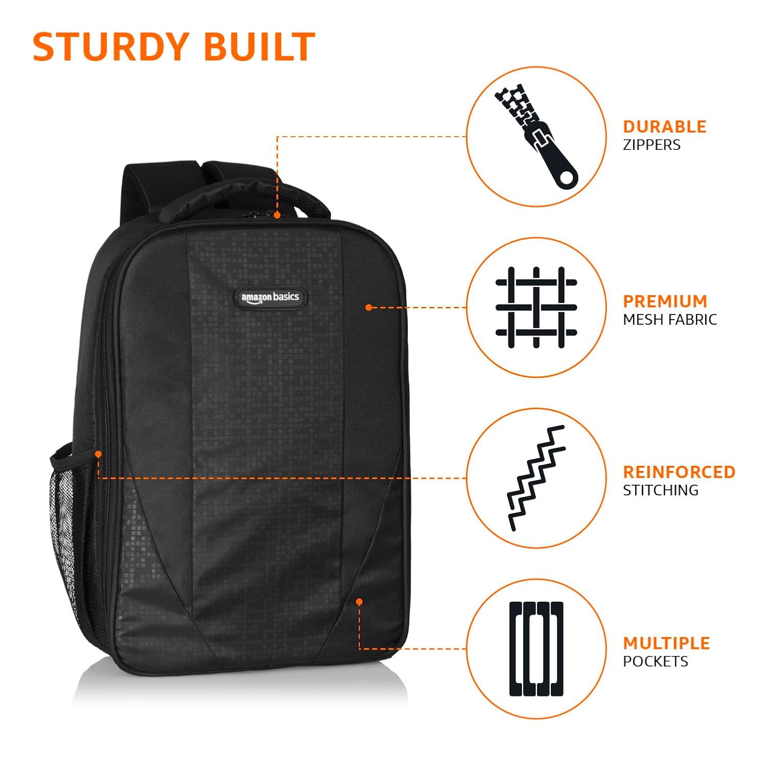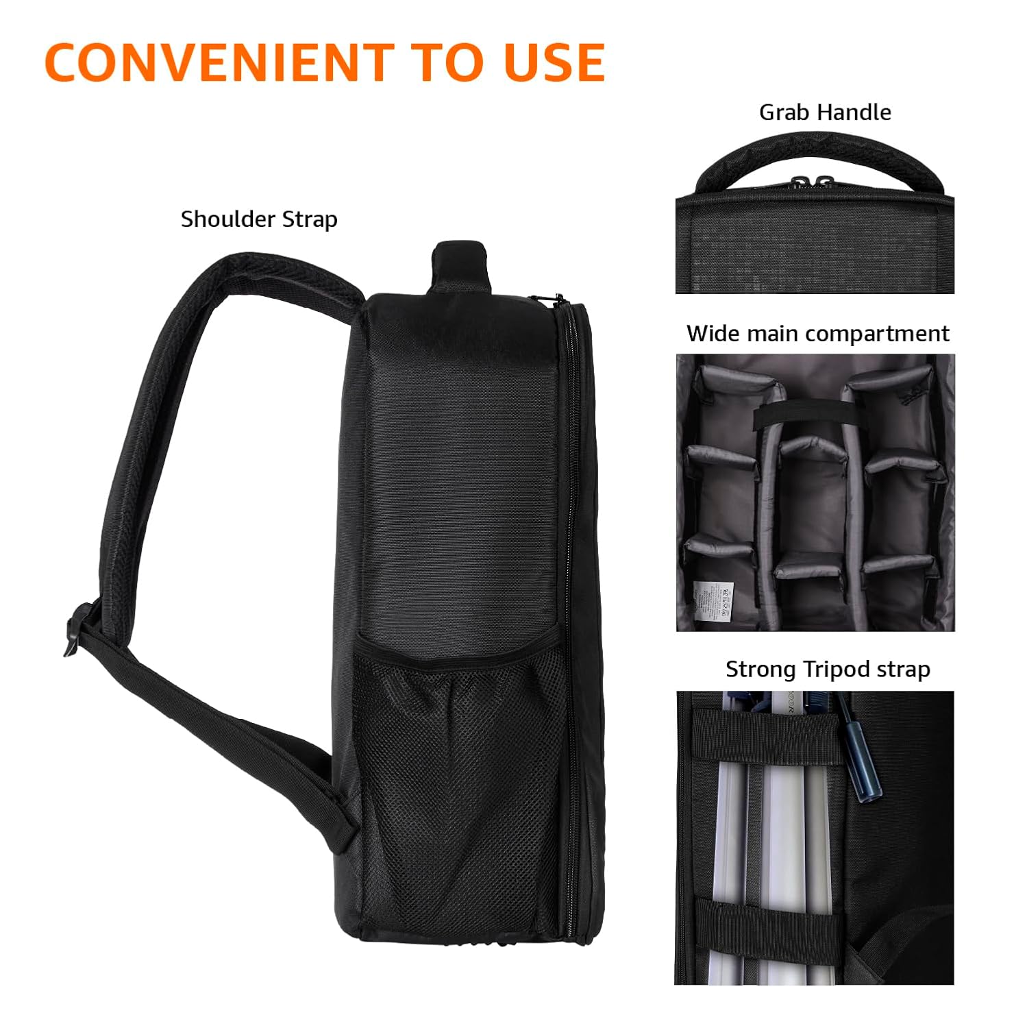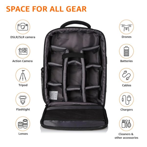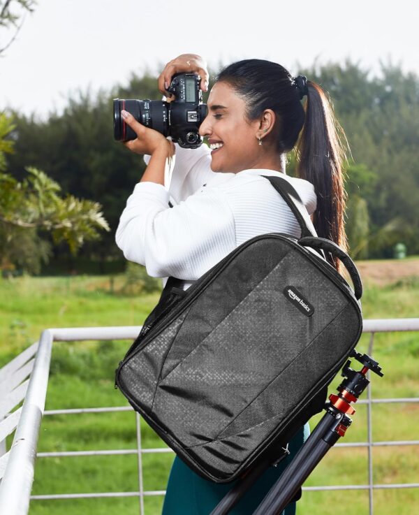 amazon basics Waterproof Fabric Medium Dslr Camera Backpack Lightweight Camera/Laptop Bag, Lens Accessories Bags Carry Case For All Dslr Slr Cameras With Tripod Holder-A52, Black