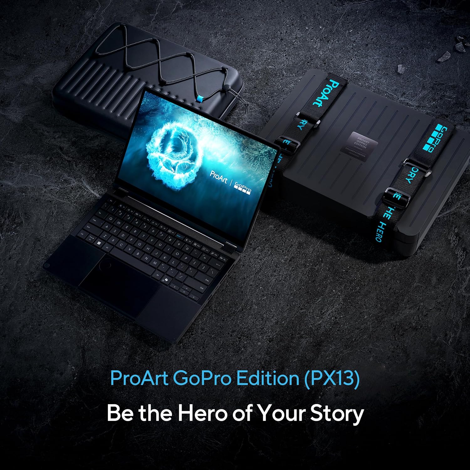 Design : GoPro-Inspired Design — Black-metal finish and matching sleeve built for creators on the move. Rugged & Convertible — 13” 360° design built tough for any adventure. Seamless GoPro Workflow — The GoPro Hotkey1 launches GoPro Player instantly while StoryCube handles GoPro cloud import and asset sorting.