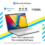 ASUS Vivobook Go 15, Intel Core i3-N305 Thin & Light Laptop(Intel UHD iGPU/8GB RAM/512GB SSD/FHD/15.6″/60Hz/Windows 11/M365 Basic (1Year)*/Office Home 2024/Cool Silver/1.63 Kg) E1504GA-NJ3321WS