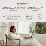Processor : AMD Ryzen AI 7 350 Processor 2.0GHz (24MB Cache, up to 5.0GHz, 8 cores, 16 Threads); AMD XDNA NPU up to 50TOPS