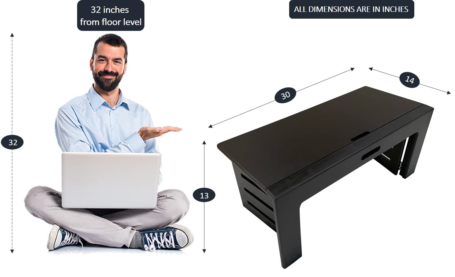 • You can use it in two ways: By opening the doors and extending or folding your legs beneath the table to sit in comfortable position on bed or sofa OR by keeping the doors and legs closed and using it as a flat board.