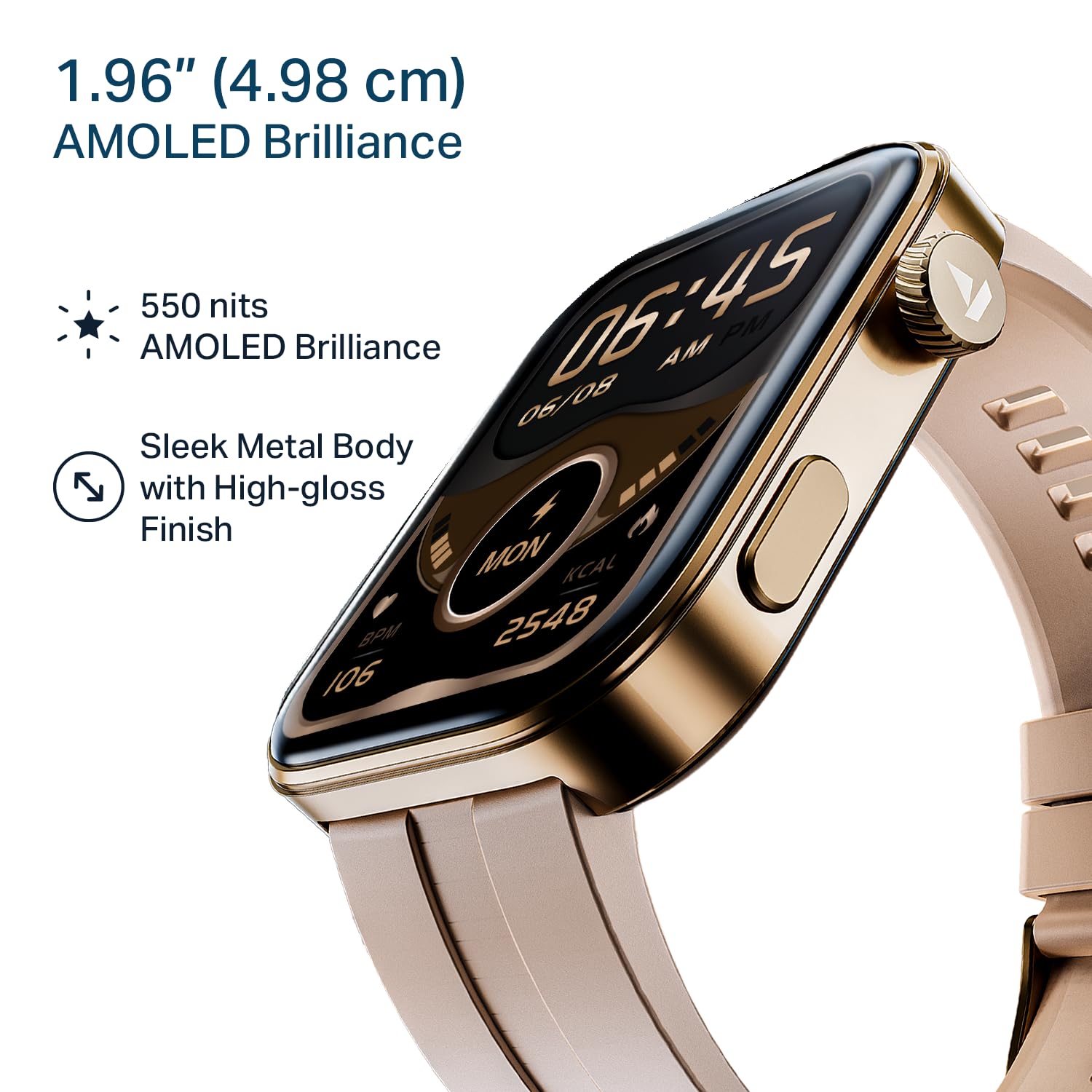 1.96” (4.97 cm) Bright AMOLED Display: Enjoy stunning visuals and colours on a 1.96” (4.97 cm) AMOLED touchscreen that makes every detail easy to read in any lighting condition. Crafted with a premium polished finish, Chrome Endeavour feels as premium as it looks, adding a touch of sophistication to your everyday style.