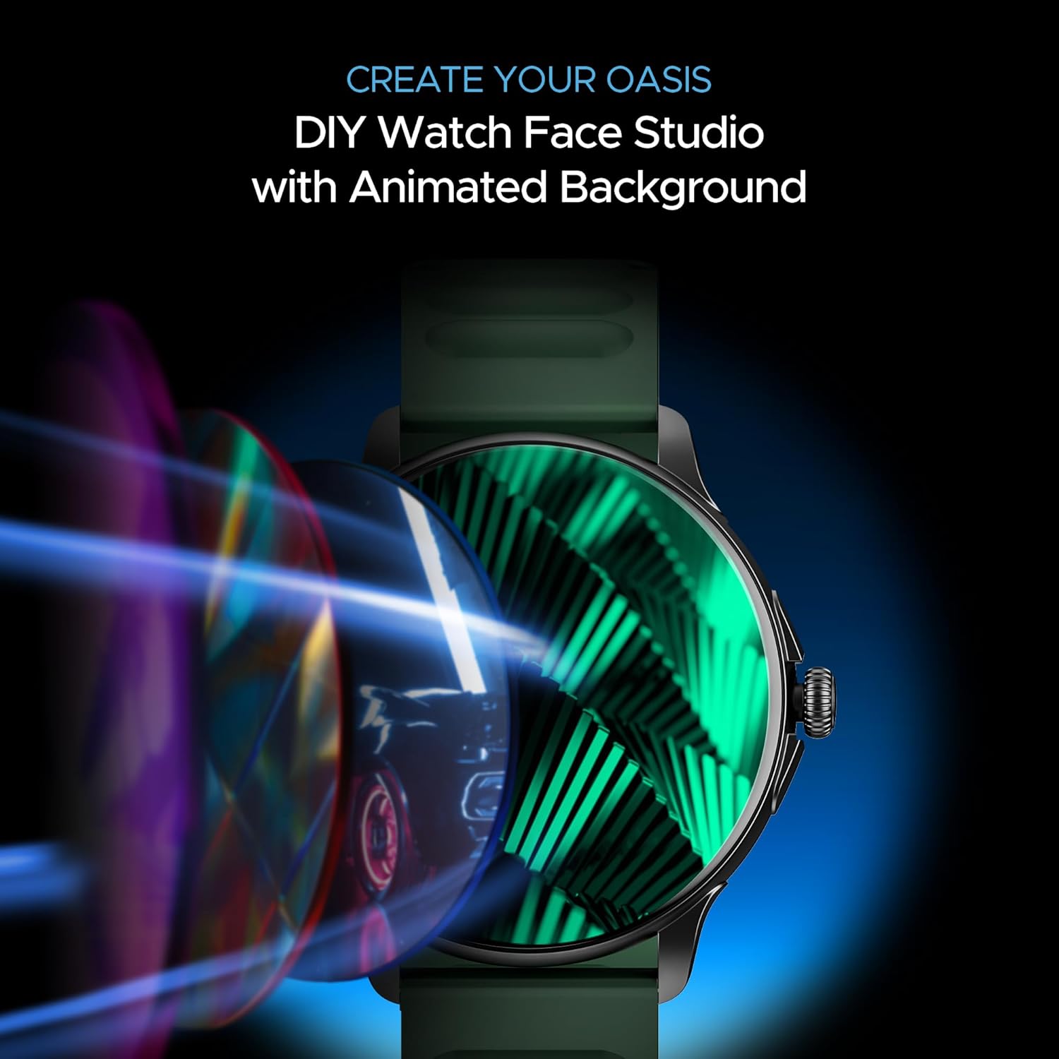 The Lunar Oasis Smartwatch features a Dynamic Animated UI with live backgrounds, smooth transitions, and customizable themes, creating a visually engaging experience. Optimized for performance, it combines stunning visuals with comprehensive health tracking, fitness challenges & smart connectivity.