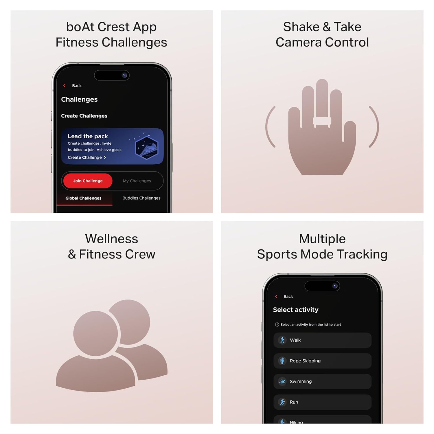30 Days Battery Life with Case| 5ATM Dust, Sweat & Sweat Resistant| boAt Crest app fitness challenges| Multiple Sports Mode Tracking| Camera Control – Shake & Take