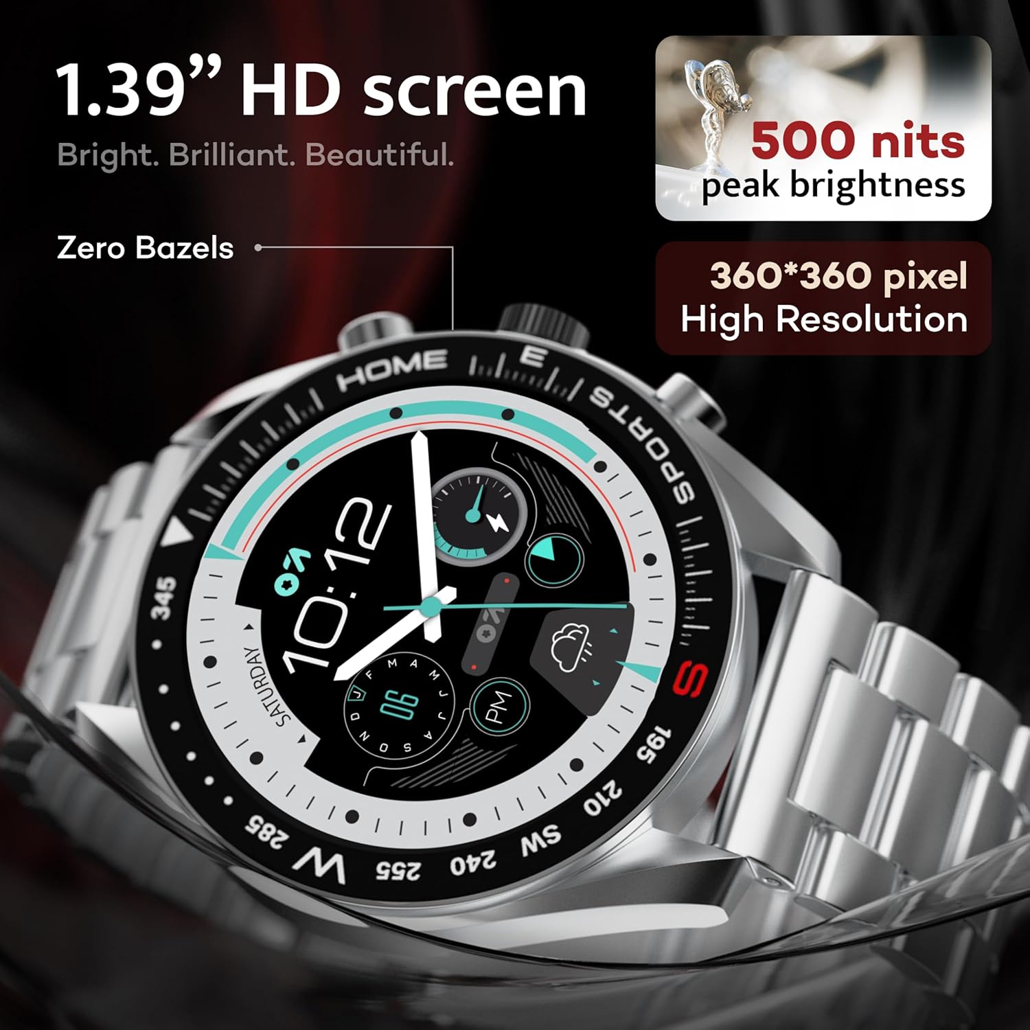 1.39” HD Display with 500 Nits Brightness: The stunning 1.39” HD display offers a high-resolution experience with 360 x 360 pixels and 500 nits brightness. Perfect for both indoor and outdoor visibility, it’s designed for those seeking premium clarity in their watch display.