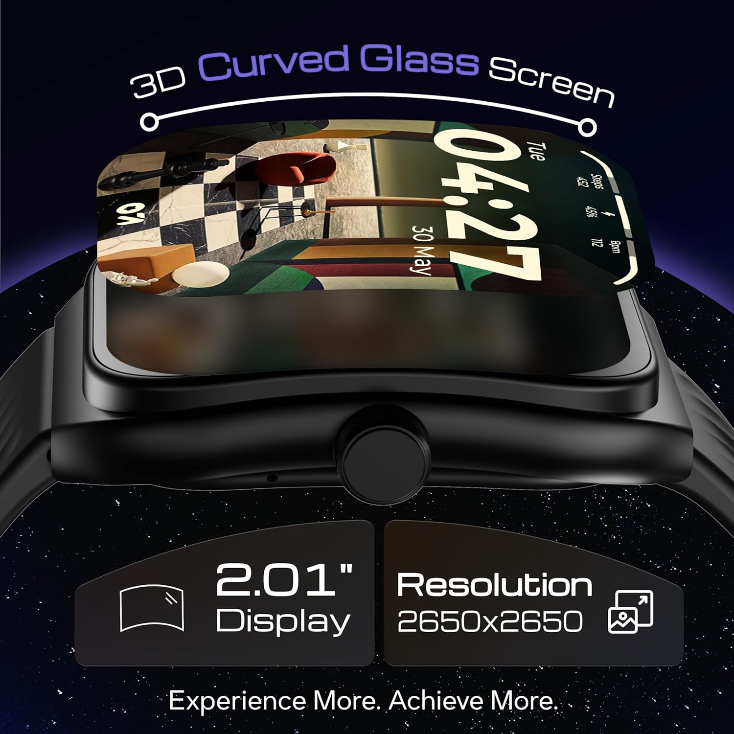 Boult GOBOULT (Formerly Trail Pro Smartwatch 2.01” 3D Curved Screen+AMOLED, BT Calling 5.3, 600 Nits Brightness, IP68, 250+ Watchfaces, 120+ Sports Modes, AI Voice Assistant, SpO2 Tracking (Black)