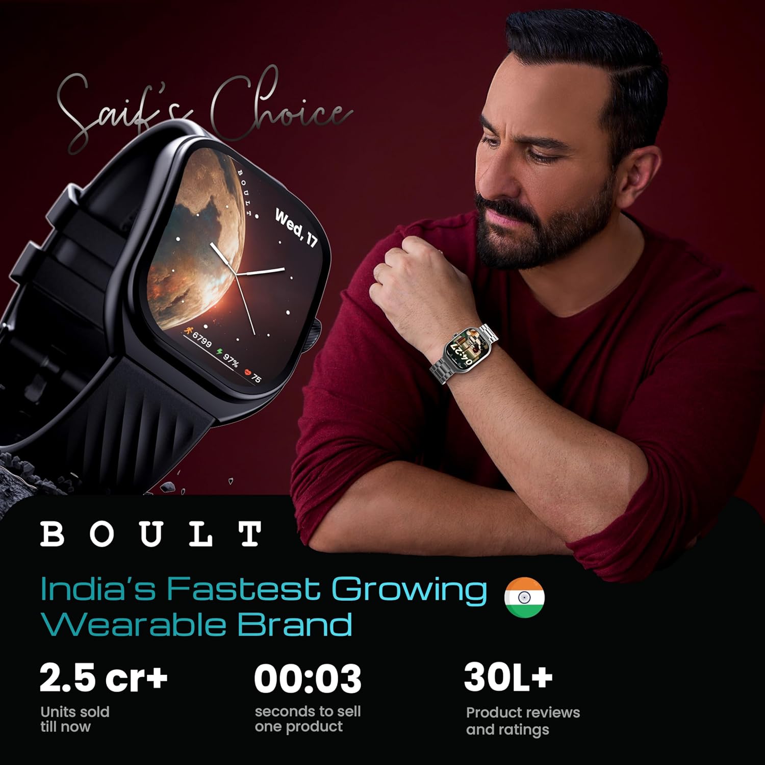 8 reviews for Boult GOBOULT (Formerly Trail Pro Smartwatch 2.01” 3D Curved Screen+AMOLED, BT Calling 5.3, 600 Nits Brightness, IP68, 250+ Watchfaces, 120+ Sports Modes, AI Voice Assistant, SpO2 Tracking (Black)