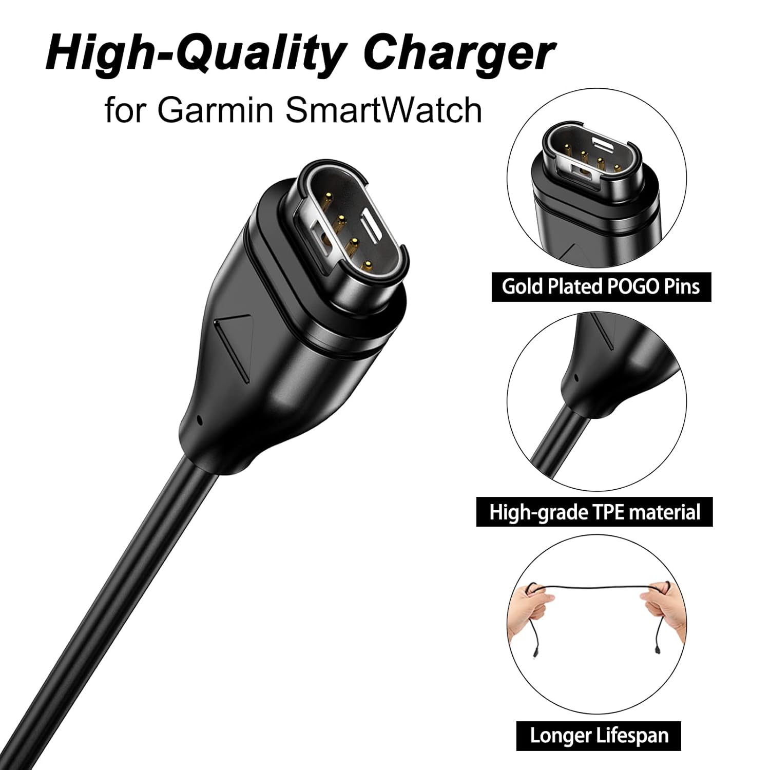 【Package Includes】: 1 x 3.3ft/100cm Garmin watch charger cables, safe & fast charging for Garmin.Bendable and lightweight, so you can carry one with your backpack or pocket, and store one in your office, home or car.