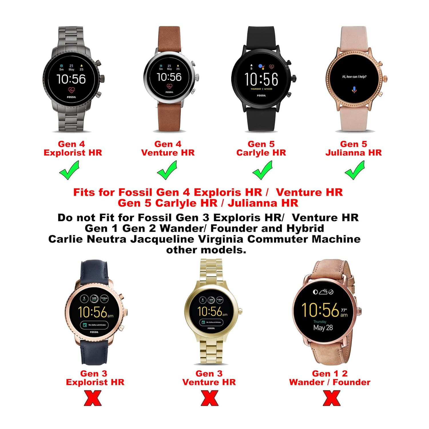 They are not compatible with Fossil Gen 3 Explorist/Gen 3 Venture/Gen 3 Sport/Q Wander Gen 2&Gen 1/Q Founder Gen2&Gen 1 and Not suitable for other ordinary watches