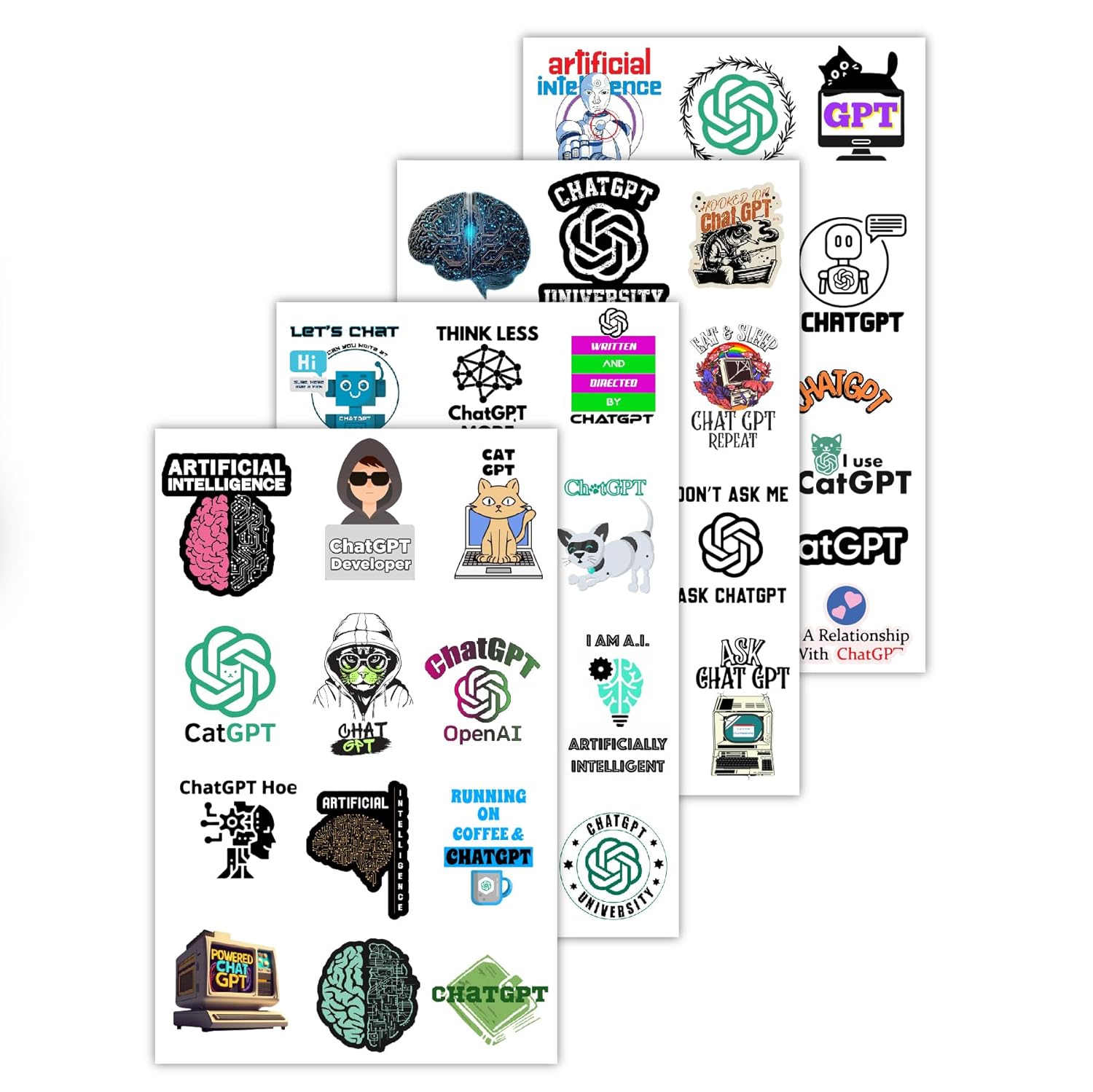 Unique AI-Themed Designs: Features a wide range of iconic ChatGPT logos, AI humor, and developer memes.