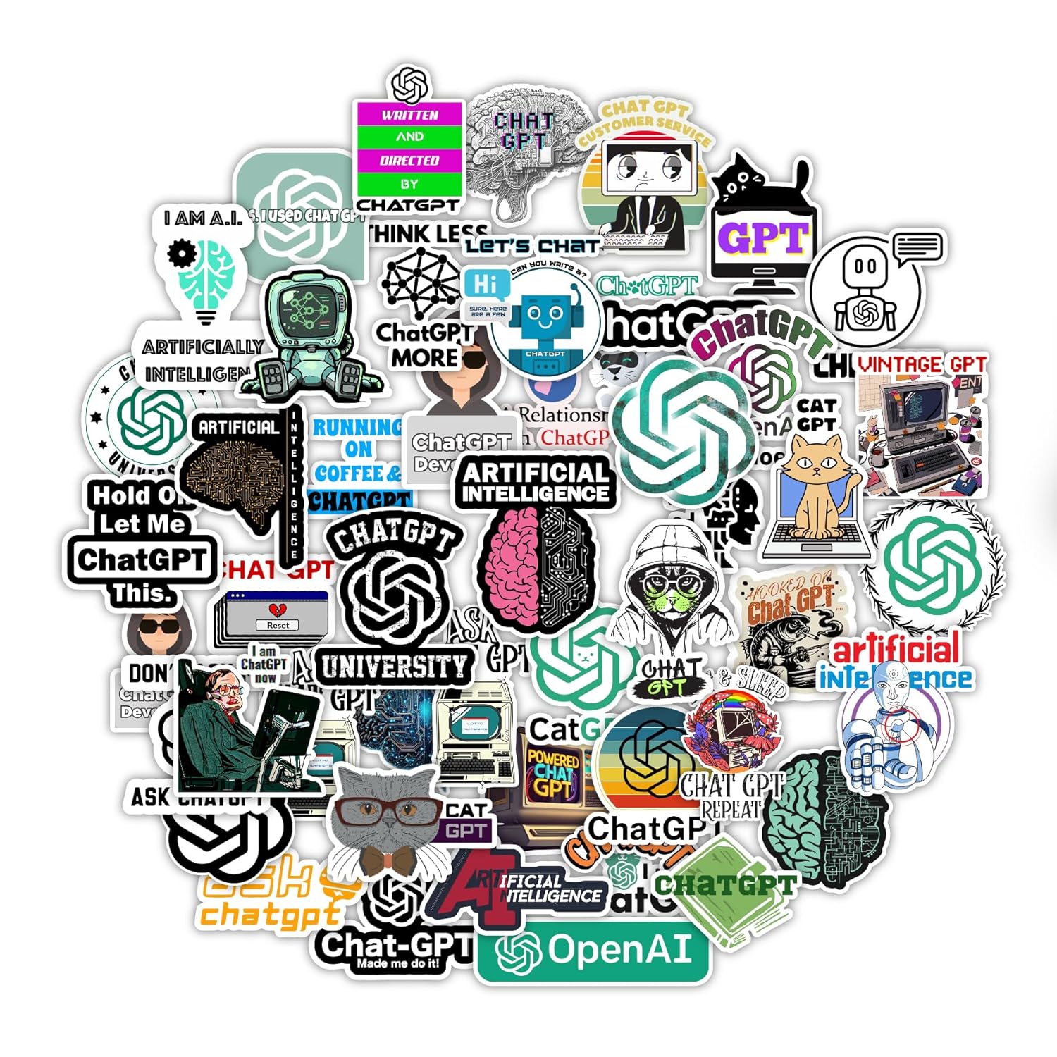 ChatGPT AI Stickers for Programmers & Developers | Tech-Themed Vinyl Decals for Laptop, Water Bottle, & Tablet Pack of 50