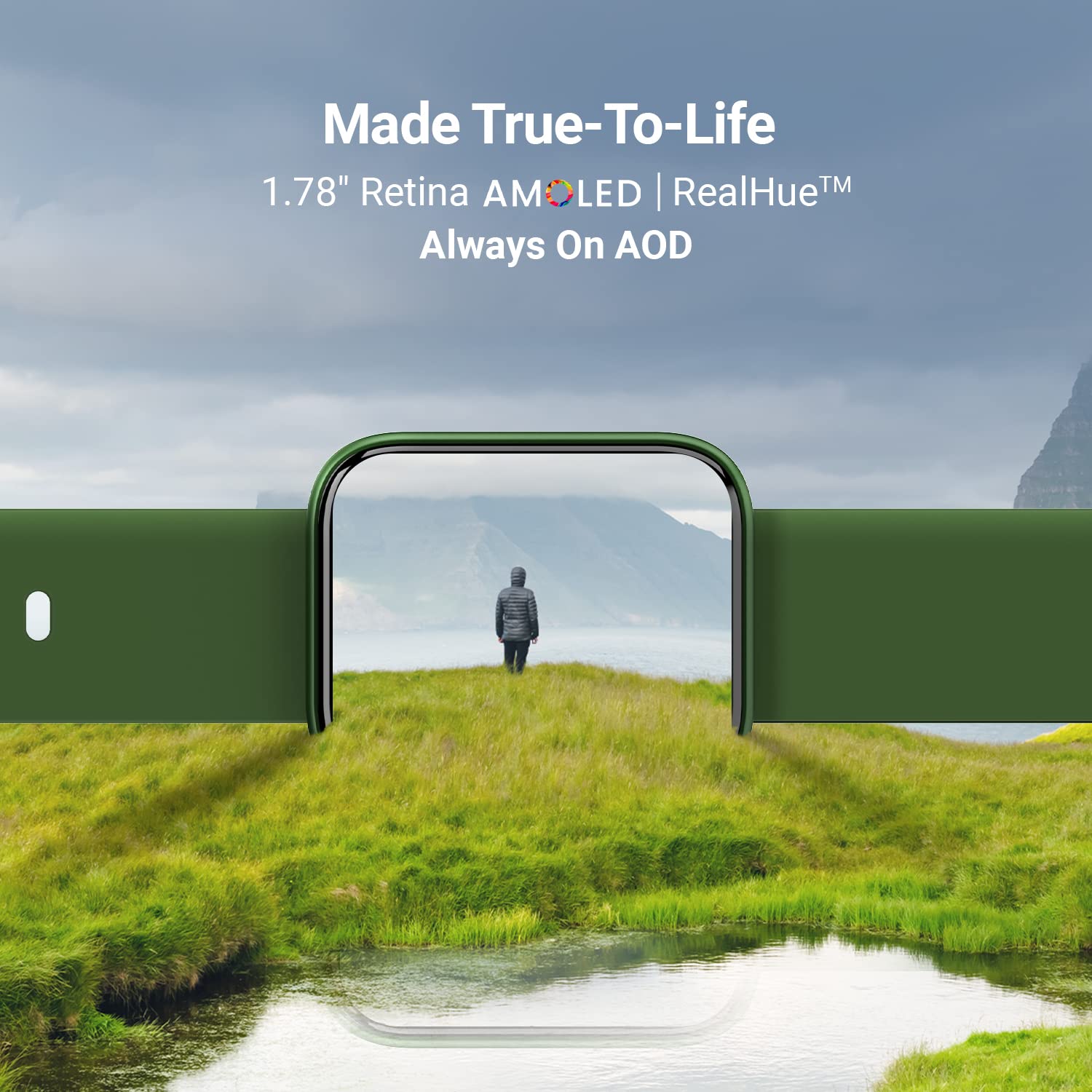 1.78 Inch, Super AMOLED Display, Always On Display (AOD), Bluetooth Calling & Other Notifications, Rotating Crown, AI Voice Assistant, AI Health Features, Heart Rate Monitor, BP & Sleep Monitoring , Built-in-Games, Multiple Sports Mode, 200+Watch Faces, 15 Days Battery.