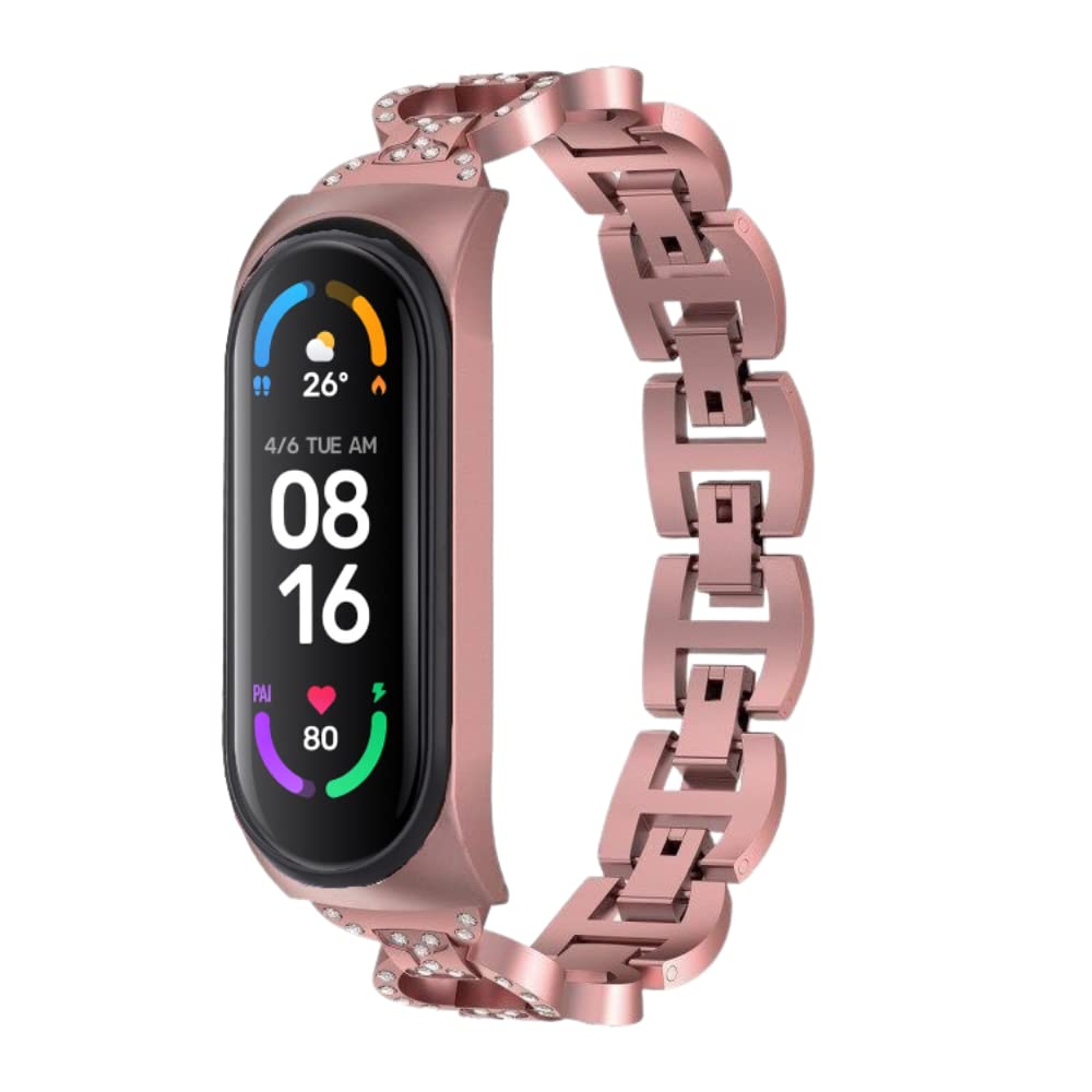 Crysendo Metal Bracelet Band Strap Compatible with Xiaomi Mi Band 7 | Mi Band 7 Strap Metal Premium Stainless Steel Bracelet Strap | Replacement Wristbands for Men/Women (No Tracker) (Diamond Rose Pink)
