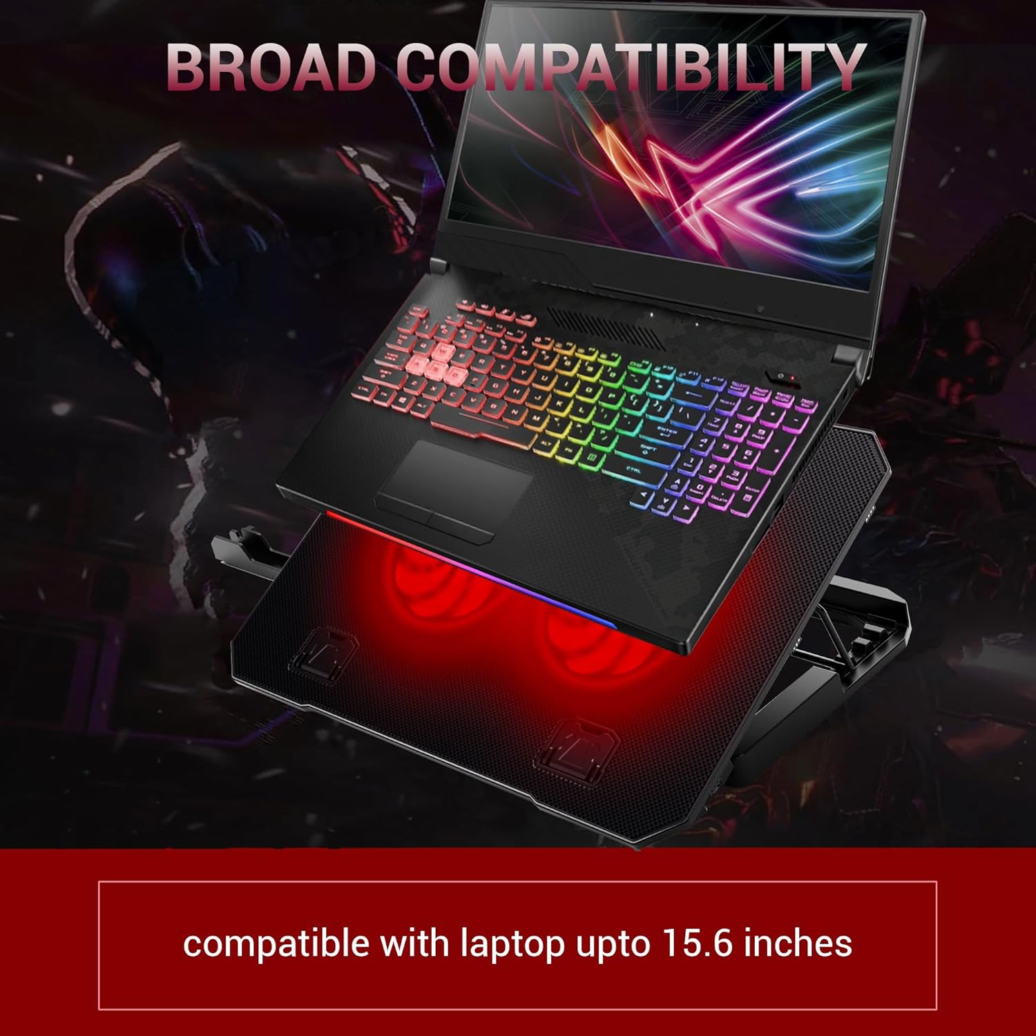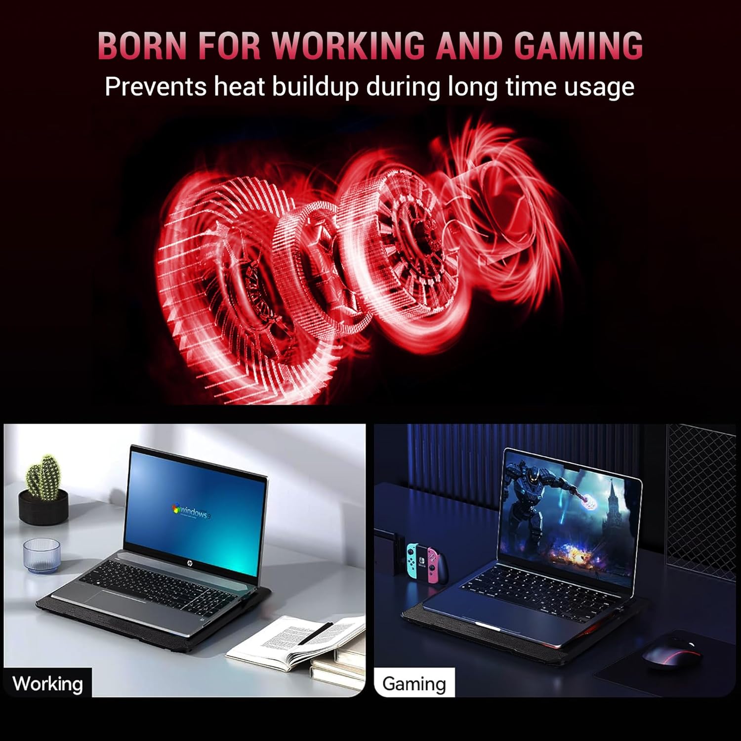 Universal Compatibility-The light and portable laptop cooling pad works with most laptops up to 15.6 inch. Meet your needs when using laptop at home or office for work and gaming