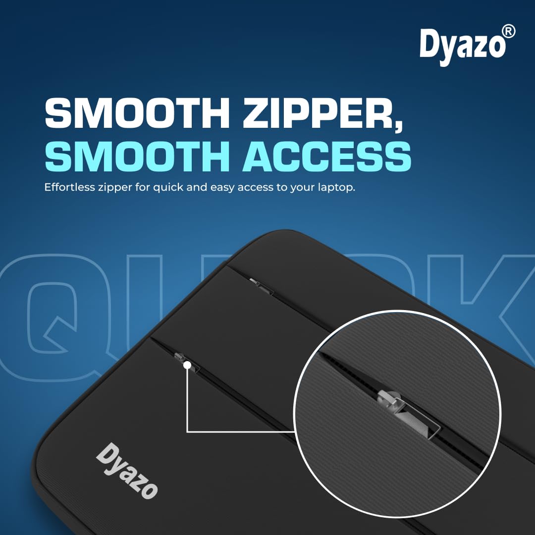 Velvet Interior for Protection The Dyazo laptop sleeve features a soft, thick velvet lining that acts as a shock absorber, offering excellent protection from bumps and scratches. This smooth interior ensures your laptop stays safe from damage while on the move. Durable Oxford Fabric Crafted from high-quality Oxford fabric, this laptop sleeve is designed to be water-resistant. Whether you’re caught in the rain or dealing with spills, your laptop will stay dry and protected from moisture and water damage. Two Front Zip Pockets Stay organized with two front zippered pockets, providing convenient storage for accessories like chargers, USB drives, external hard disks, and more. These compartments keep your essentials handy and neatly separated from your laptop. Top Handle for Easy Carrying The Dyazo sleeve includes a strong, ergonomic handle at the top, making it easy to carry your laptop sleeve like a briefcase. This well-positioned handle ensures comfort and convenience, allowing you to quickly grab and go.