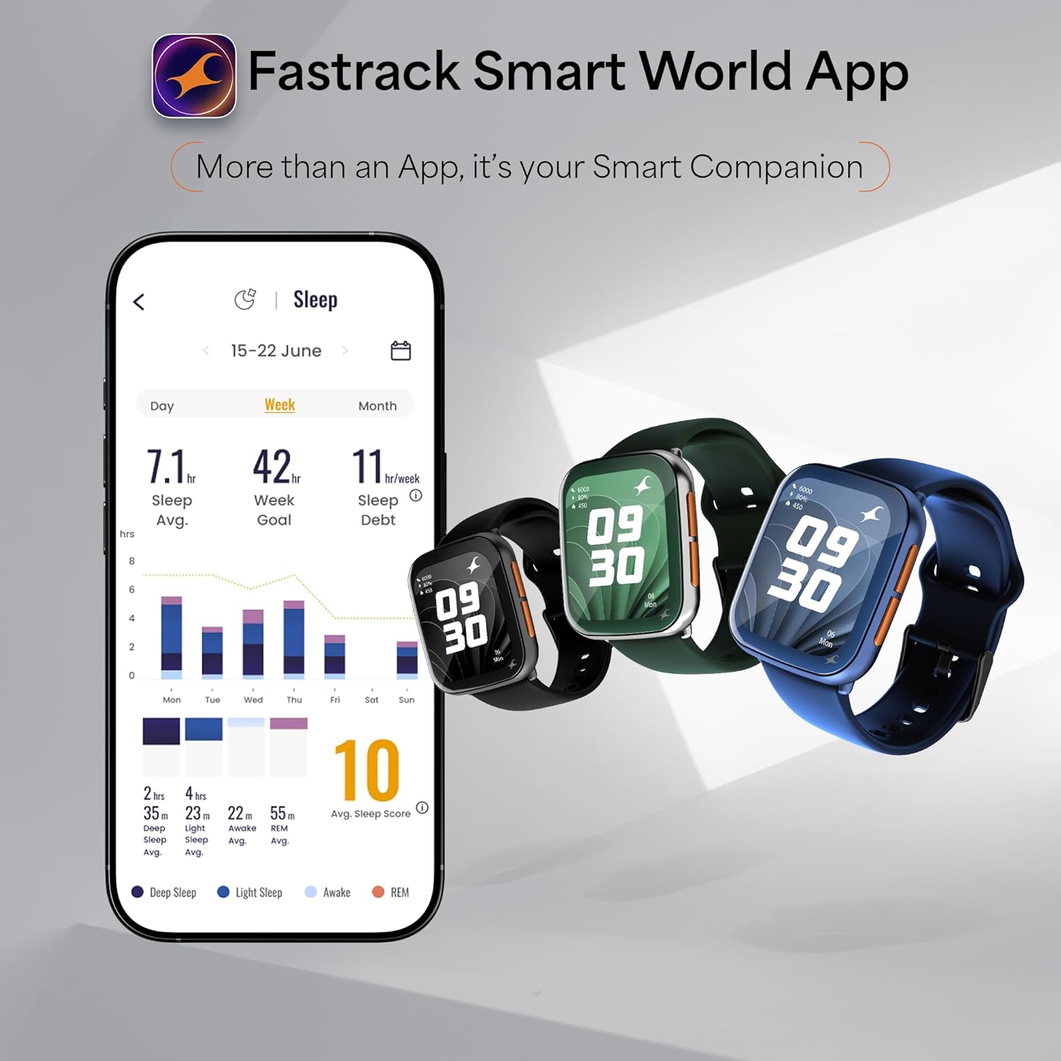 Fastrack Navstar 1.85″ AMOLED Square Display Smart Watch with GPS, Offline Voice Command, AI Enabled, 100+ Sports Mode, BT Calling, IP68 Water Resistant Upto 5 Days Battery Life – Onyx Black