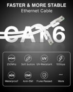 ✔️HIGH-PERFORMANCE INTERNET CABLE IS CAT6 RATED – The Ethernet cord with 24 AWG CCA wire provides universal connectivity for LAN network components such as PCs, computer servers, printers, routers, switch boxes, TV, Gaming Devices, network media players, NAS, VoIP phones, PoE devices, and more.
