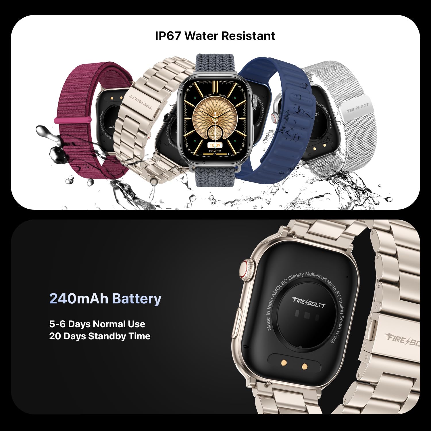 Fire-Boltt Brillia Pro Smart Watch 2.02″ Super AMOLED Display with Bluetooth Calling, SPO₂ & Heart Rate Monitor, 120+ Sports Modes, IP67 Waterproof Metal Smartwatch for Men & Women – Champagne