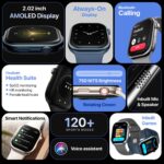 ULTRA-BRIGHT 2.02” AMOLED DISPLAY FOR CRISP VISIBILITY: Enjoy stunning visuals on a large 51.3mm (2.02”) always-on AMOLED display with 750 NITS brightness and 240×296 resolution. premium smart watch for men with crystal-clear readability even under bright sunlight.