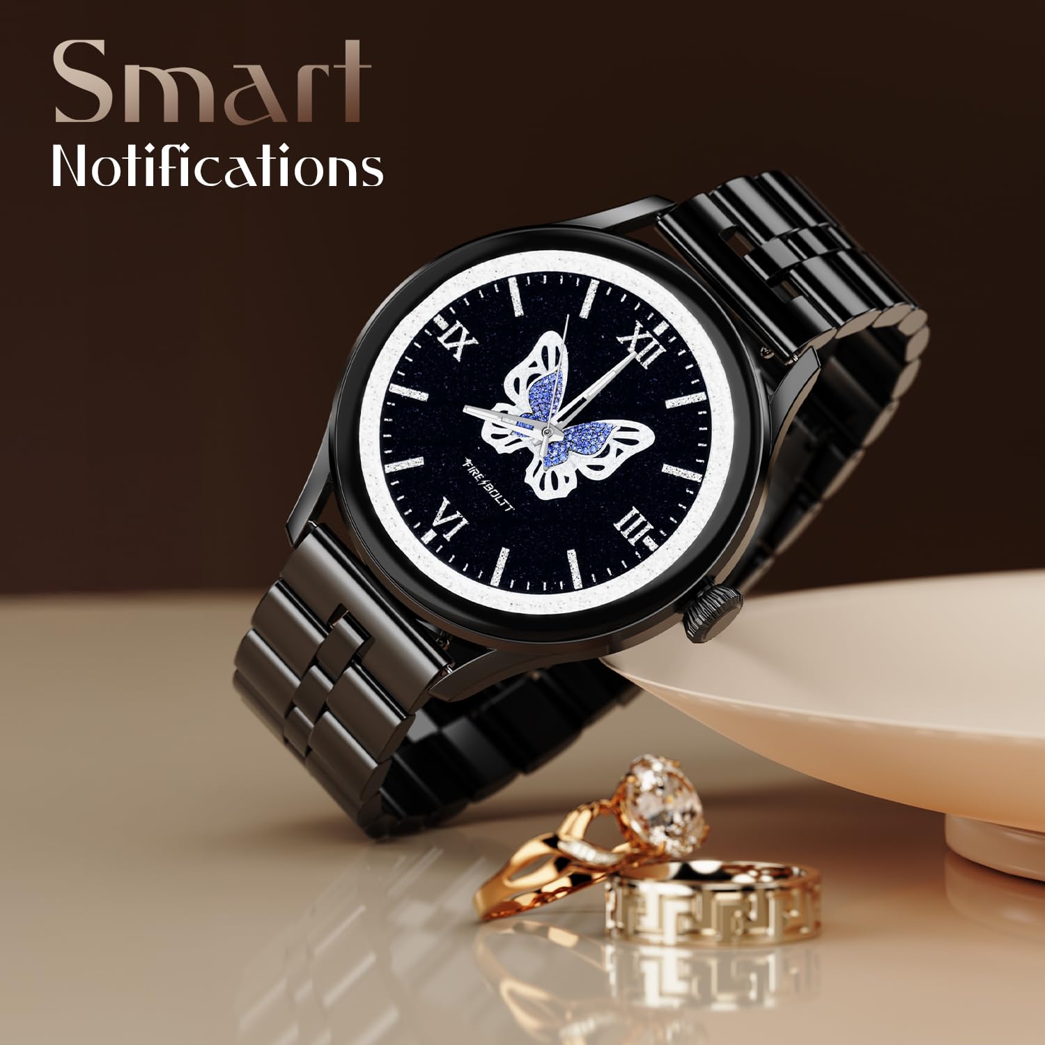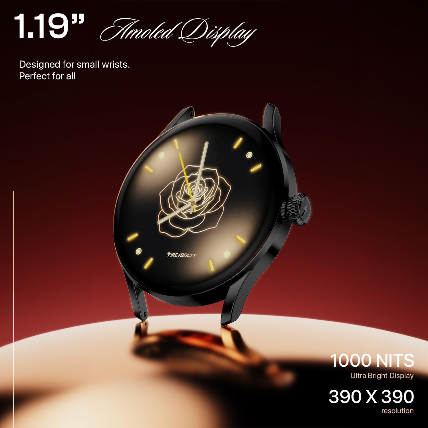 Fire-Boltt Glitz Women Smart Watch with 1.19” AMOLED Display, Bluetooth Calling, Rotating Crown, Always On Display, 1000 Nits Brightness, IP68 Waterproof Black