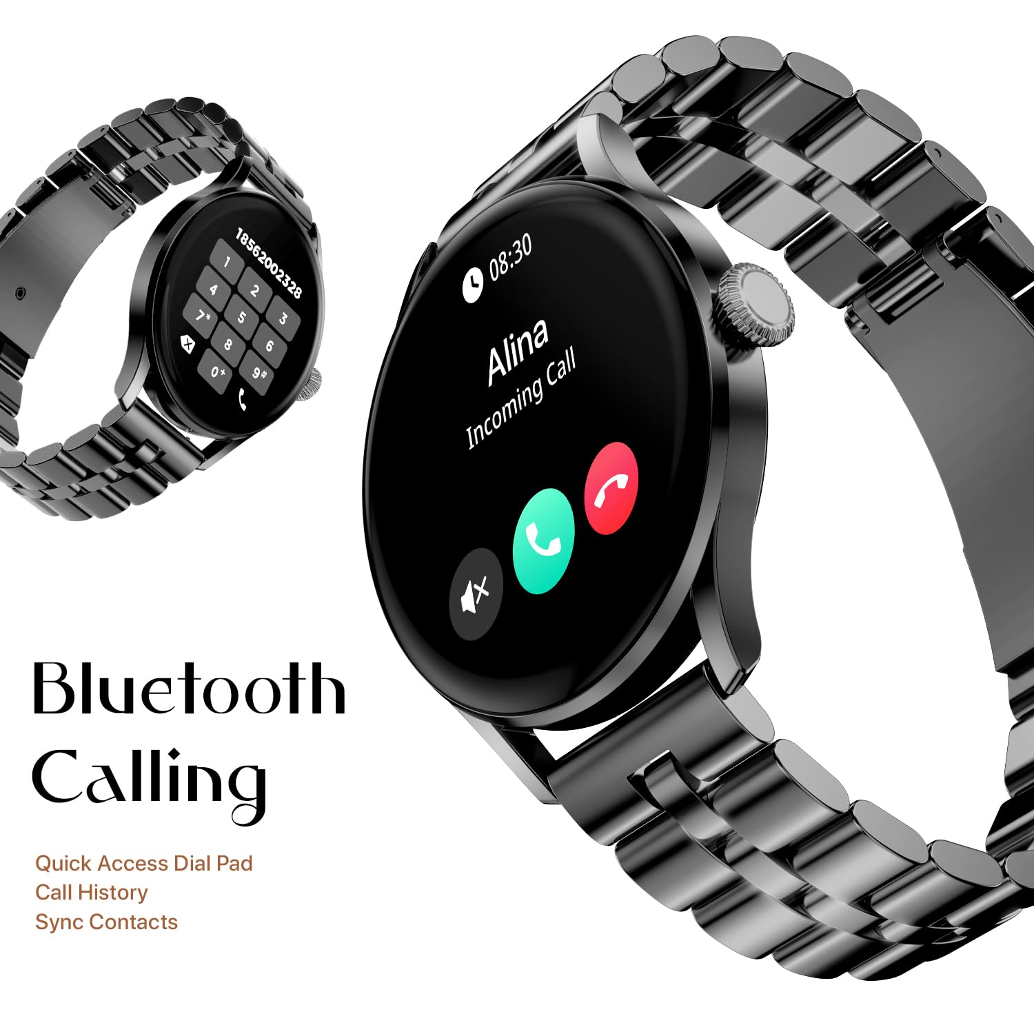 Bluetooth Calling Smartwatch – Make and receive calls directly from your wrist using Bluetooth calling with an in-built microphone and speaker, offering hands-free convenience throughout the day.