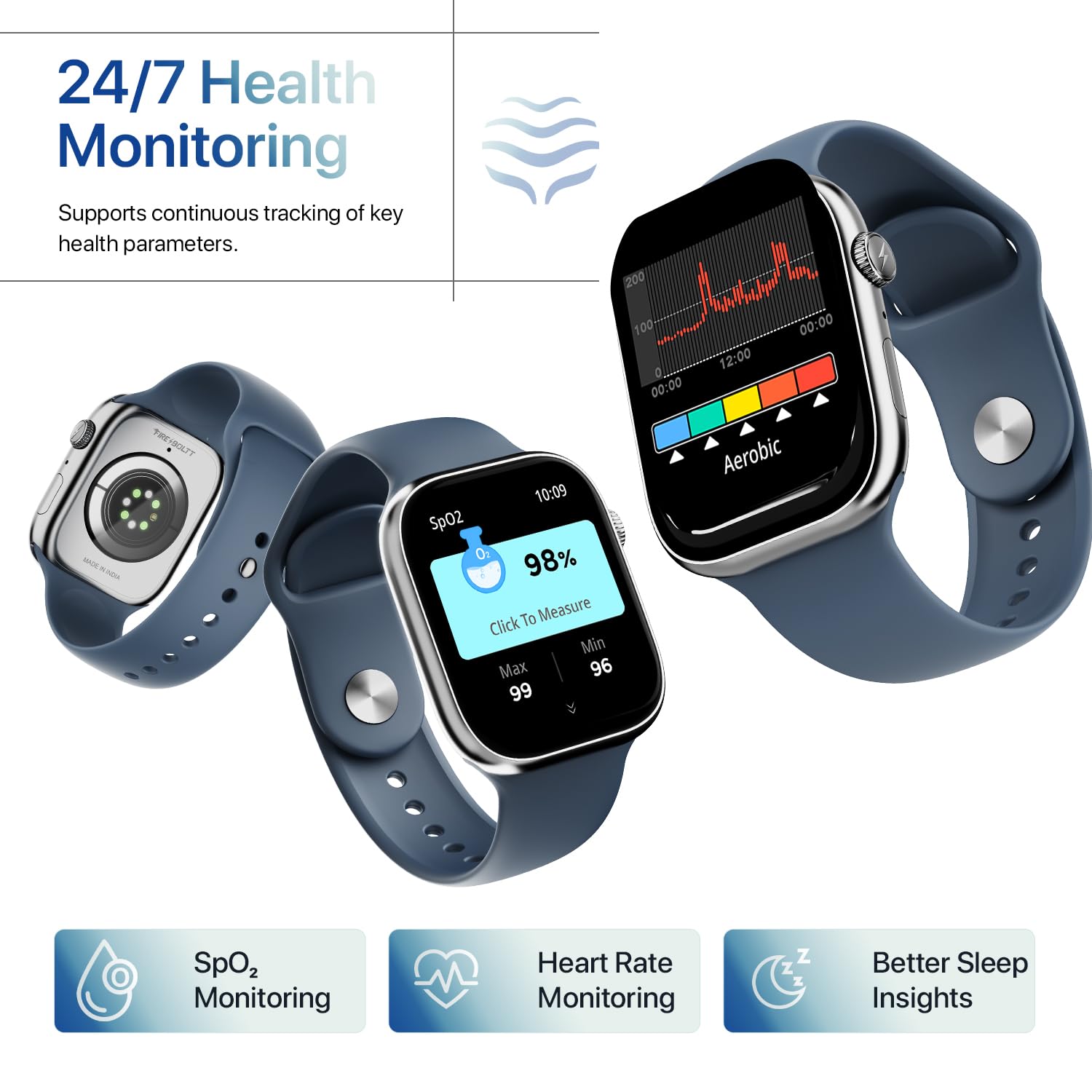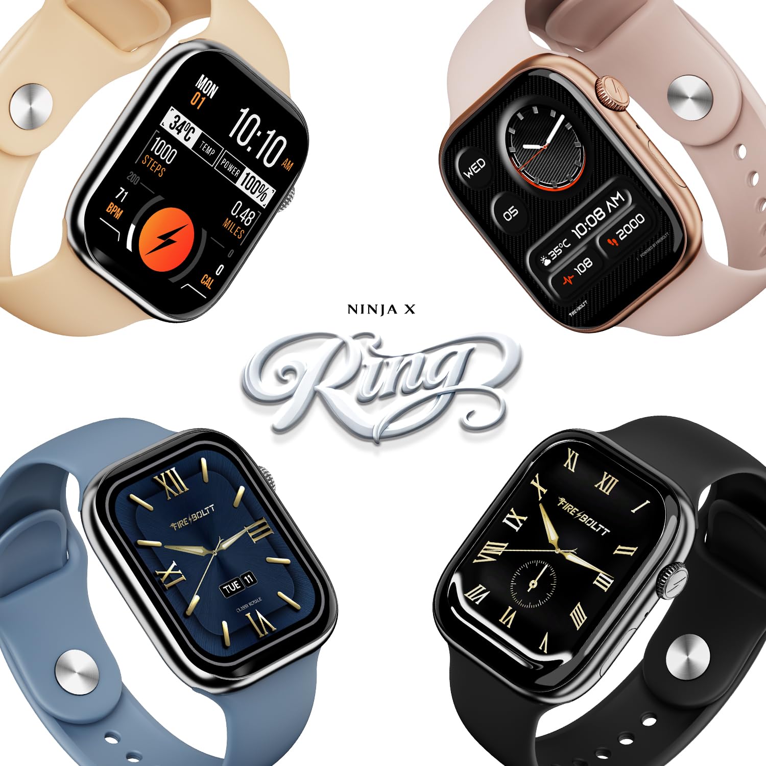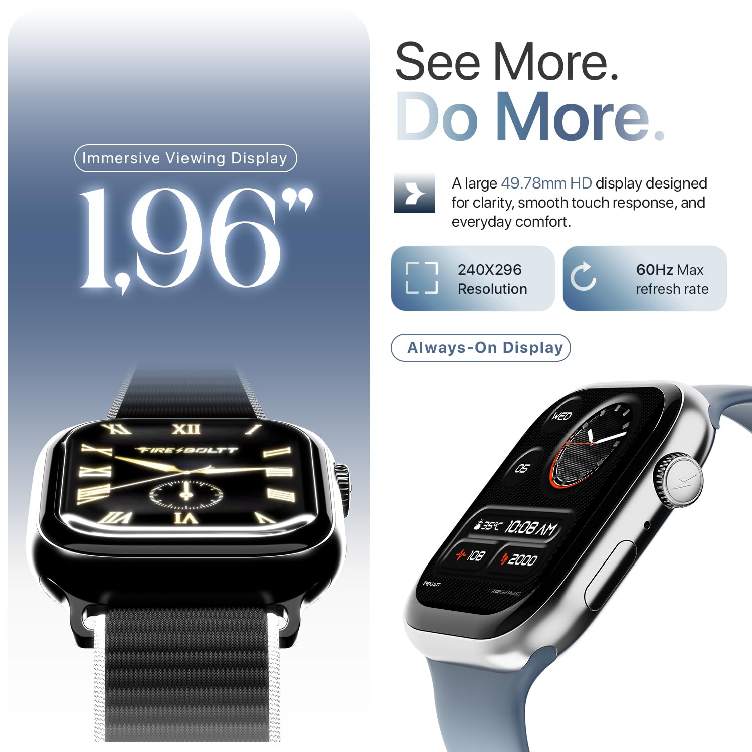Fire-Boltt Ninja X Ring Smart Watch with 1.96” Always-On Display, Bluetooth Calling, Wireless Charging, AI Voice Assistant, 500+ Watch Faces, Health Suite, Smart Watch for Man & Woman – Blue S