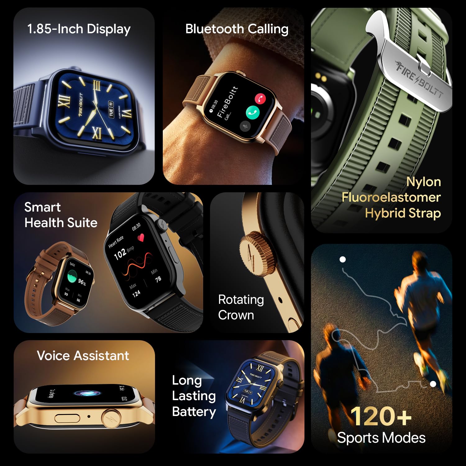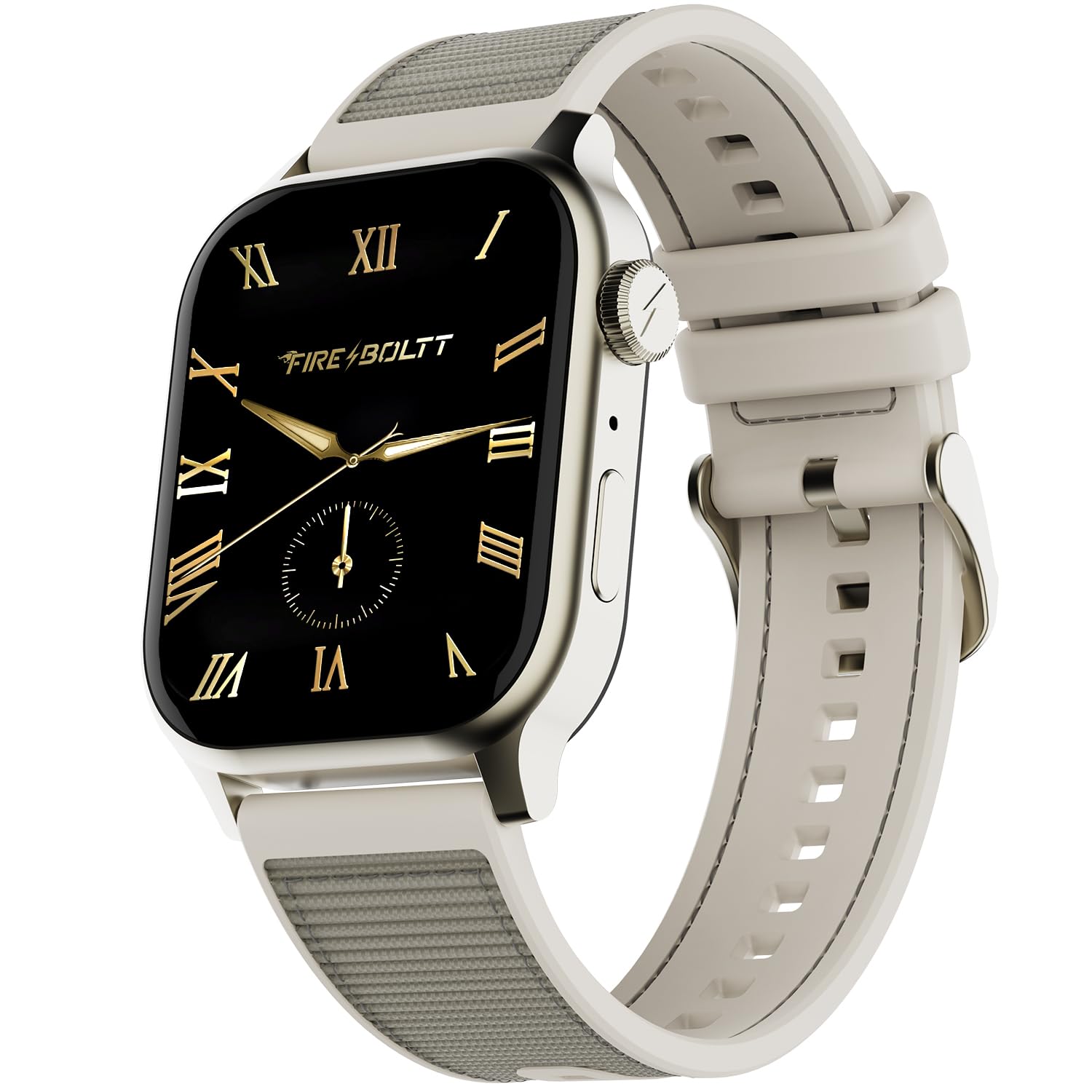 Fire-Boltt Rise Force Smart Watch 1.85” Display, Nylon–Fluoroelastomer Hybrid Strap, Rotating Crown, Bluetooth Calling, Dual Button Control, Metal Body Smartwatch for Men and Women Sandstone