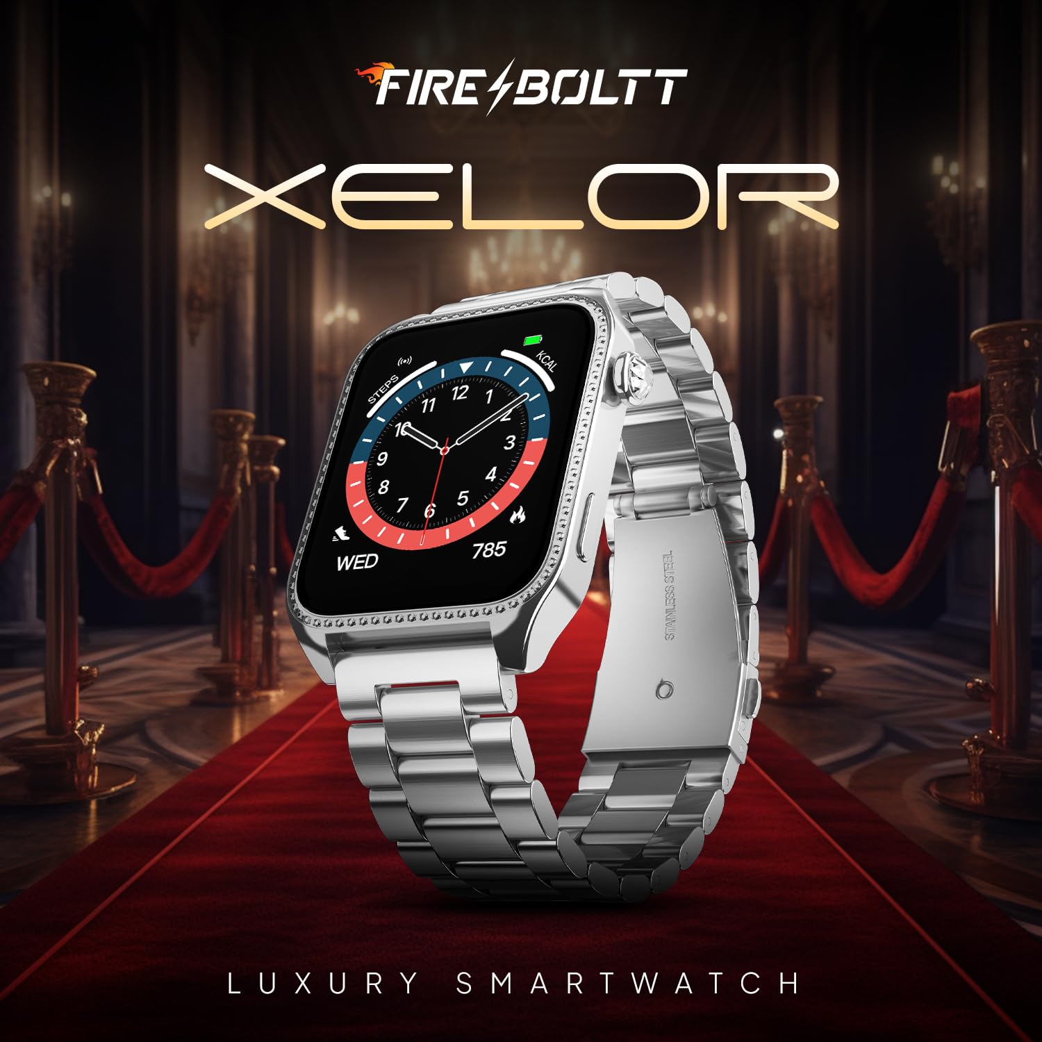 Fire-Boltt Xelor Luxury Stainless Steel Smart Watch. 1.78″ AMOLED, Always-On Display, 368 * 448 px Resolution, Bluetooth Calling, 75 HZ Refresh Rate