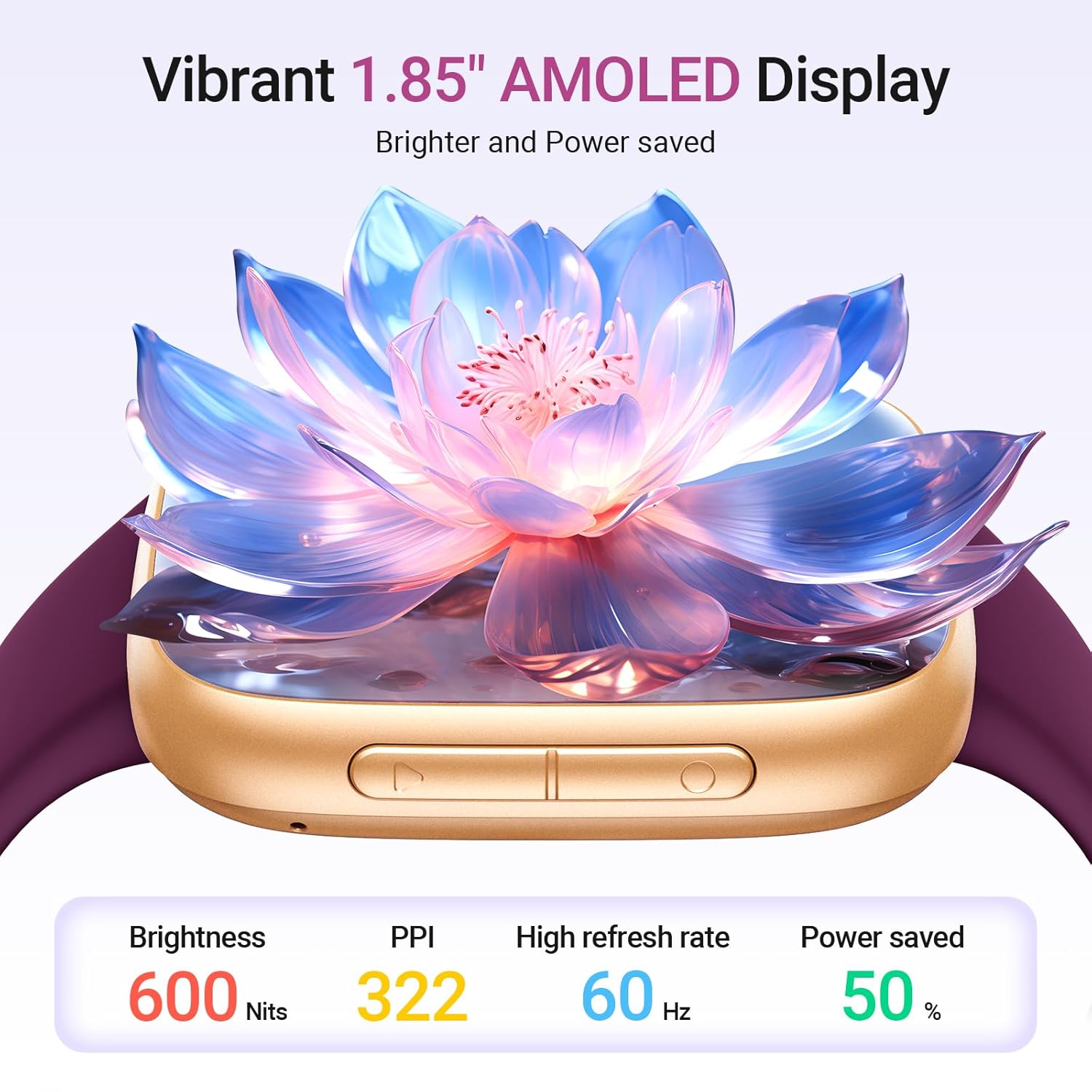 Fitpolo Smart Watch for Women, 1.85″ AMOLED Fitness Tracker with Bluetooth Call, Heart Rate/Sleep/SPO₂ Monitor, 100+ Sports Modes, 3ATM Waterproof Smartwatch for Android/iPhone, Includes 2 Bands