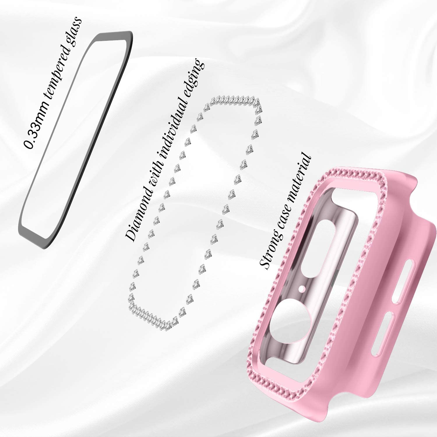 [ Application ] Specially designed for Apple Watch Series 7/6/5/4/3/2/1/SE 40mm 41mm 42mm 44mm 45mm, please choose the model as you need.Bling diamonds bumper with screen protector, protect and stylish your Apple Watch!
