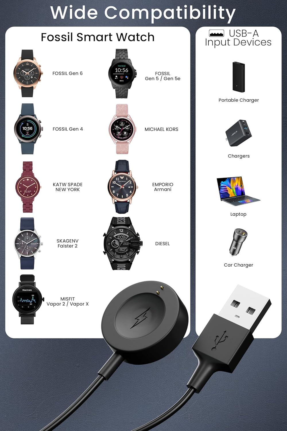 Fossil Watch Charger for Fossil/Misfit/Michael Kors/Skagen/Emporio Armani/Kate Spade/Diesel Smart Watch Charging Cable Station Stand