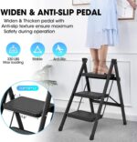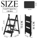FWQPRA 3 Step Ladder | Folding Step Stool for Adults | Lightweight Step Ladder | Portable Ladders for Home, Kitchen, Library, Office | Small Step Stools with Anti-Slip Wide Pedals (Black) Carbon Steel
