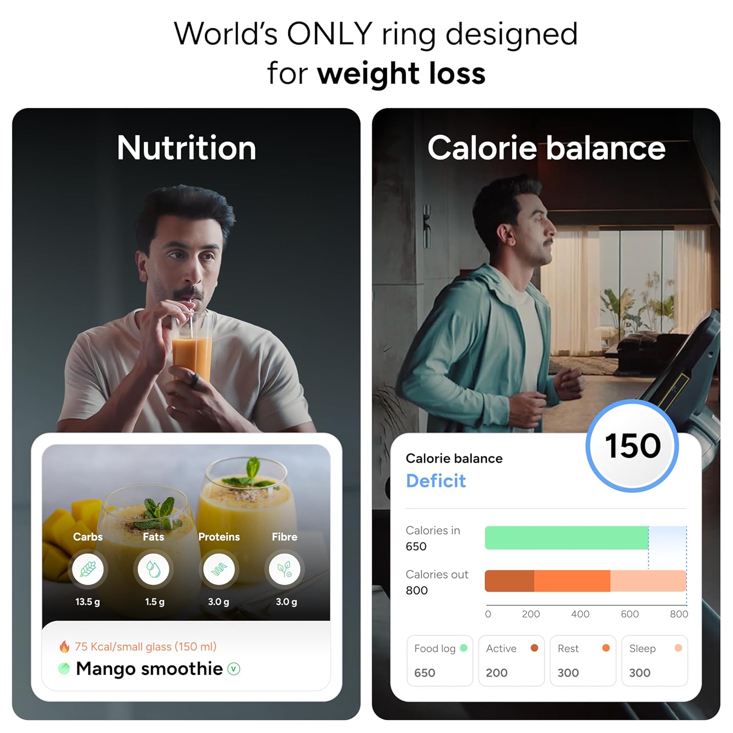 GABIT SMART RING is the world’s first smart ring that tracks all 4 pillars of health – Sleep, Fitness, Nutrition, and Stress with no subscription fee and a powerful 7+ day battery life, is built with titanium for durability, is feather-light and water-resistant up to 50m. Gabit is the only wearable to track Calorie surplus/deficit, along with 30+ workout modes, Automatic Workout Detection, and women’s health features including period tracking. It also includes powerful AI features like PEP – your AI Health Coach, Voice-based Food Logging, and personalized health insights. Get real-time tracking of your key body markers – VO2 Max, Resting Heart Rate, Heart Rate Variability (HRV), Heart Rate.