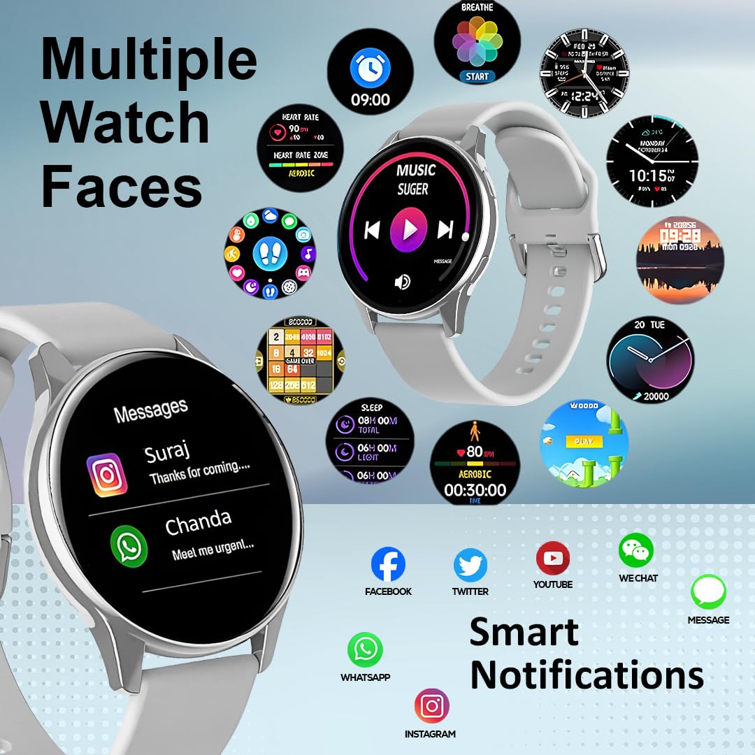 1.3″ HD Touchscreen & Customizable Watch Faces: Experience seamless interaction with a 1.3″ HD full touch color screen. Personalize your smartwatch with custom watch faces, including personal photos and various stylish backgrounds.
