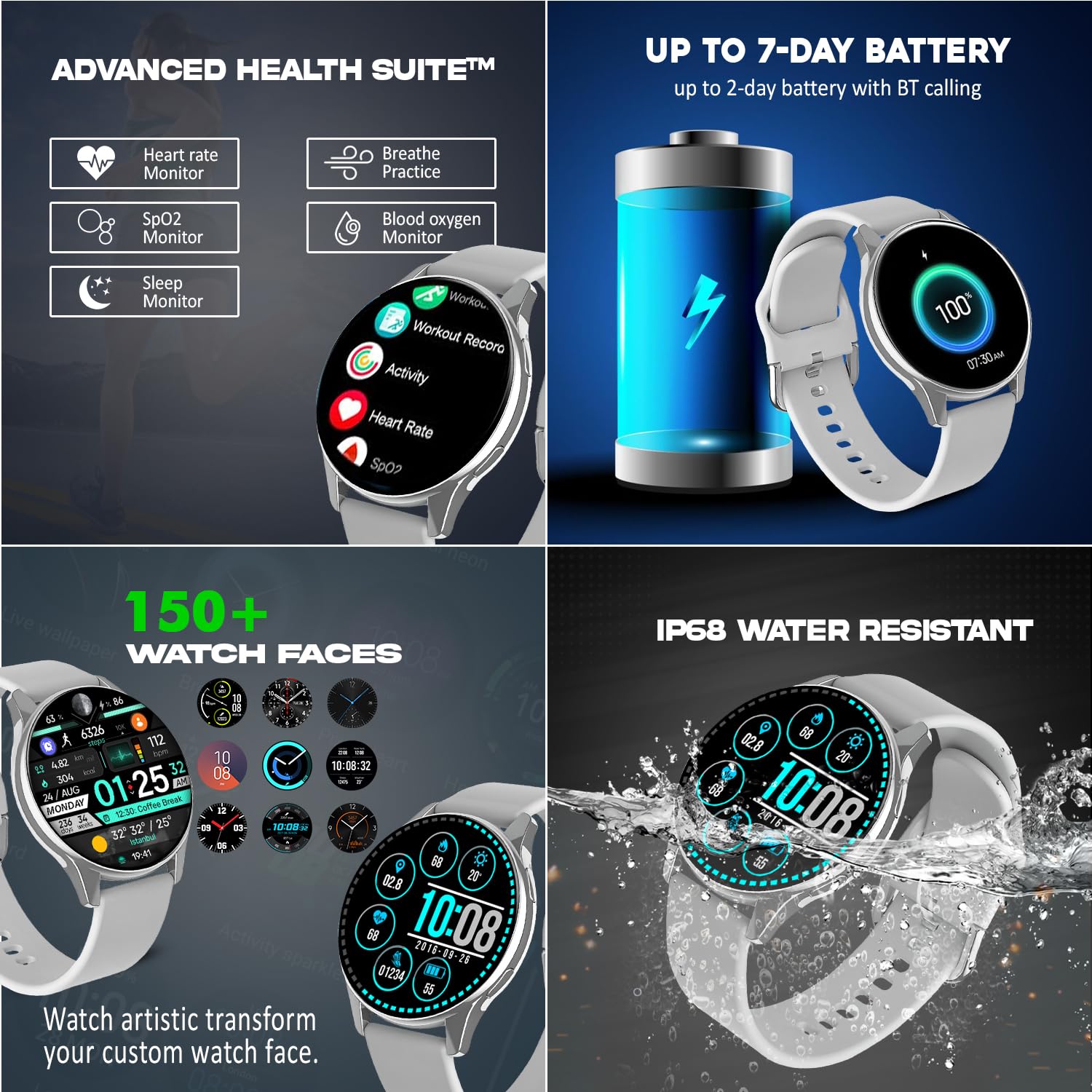 100+ Sports Modes & IP67 Waterproof: Supports a wide range of activities, including running, cycling, yoga, and swimming. The IP67 waterproof rating ensures your smartwatch is durable enough for workouts and water exposure.