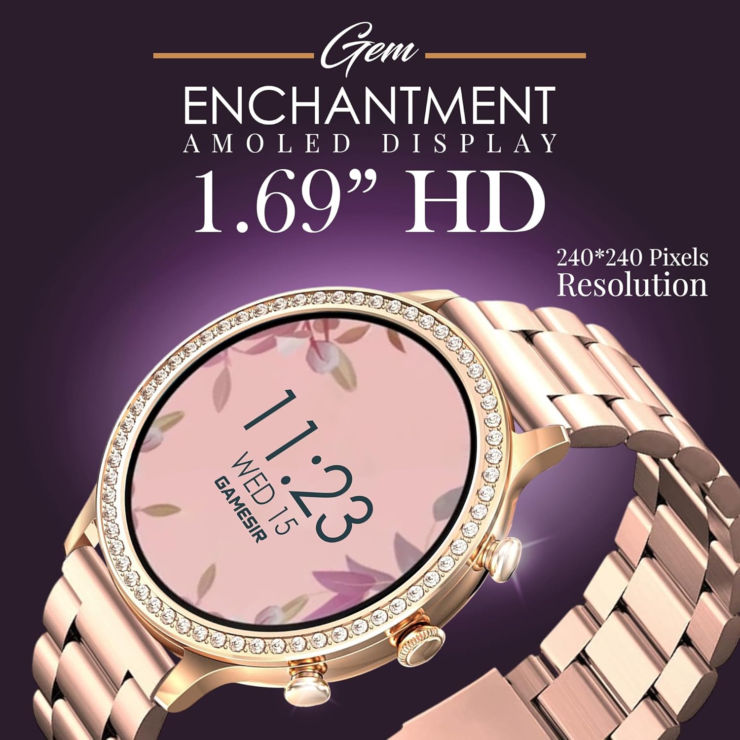 GameSir GenDiva Smartwatch for Women with Bluetooth Calling, 1.69” AMOLED Display, 100+ Sports Modes, Health & Sleep Monitor, Voice Assistant, IP68 Waterproof, Long Battery Life, (Rosegold)