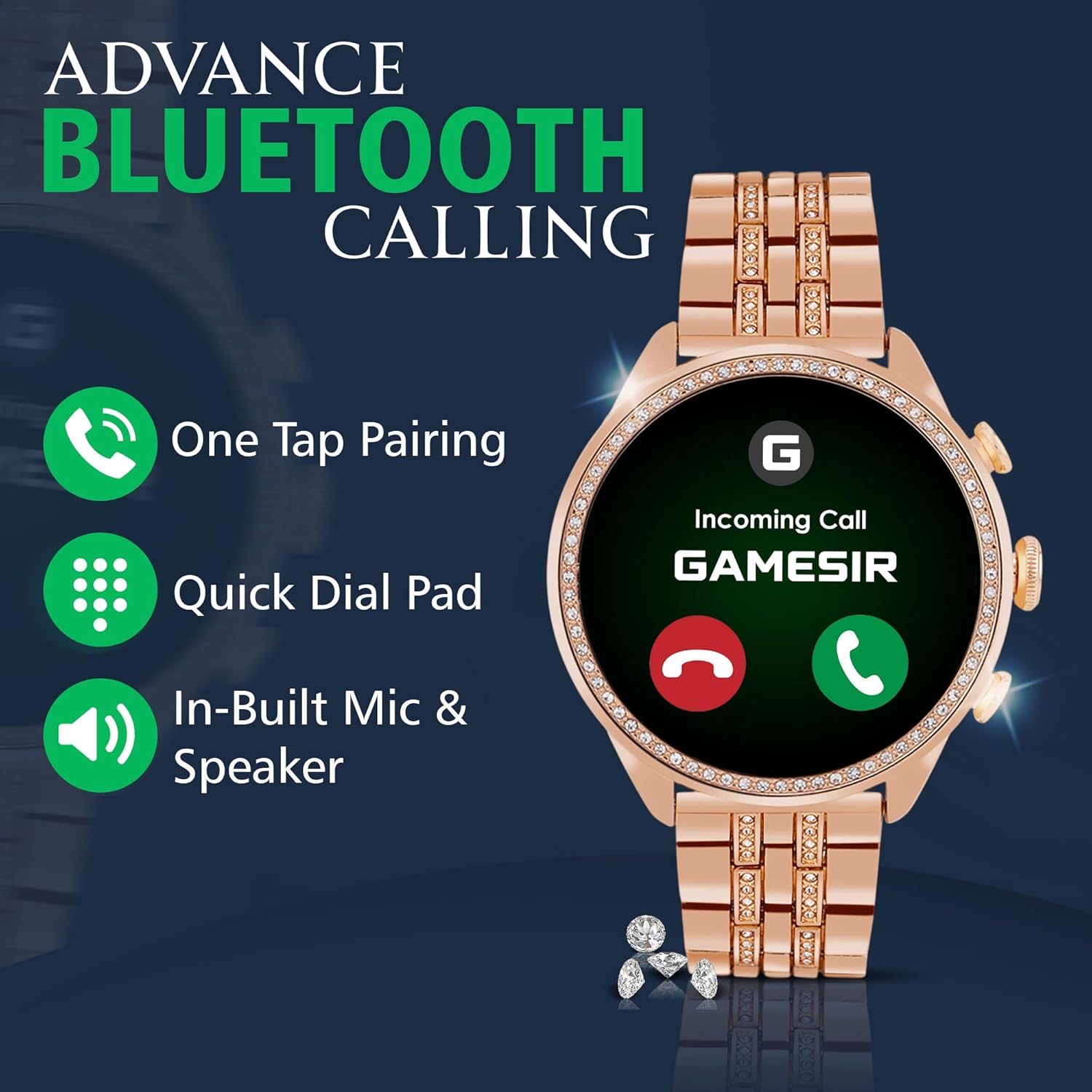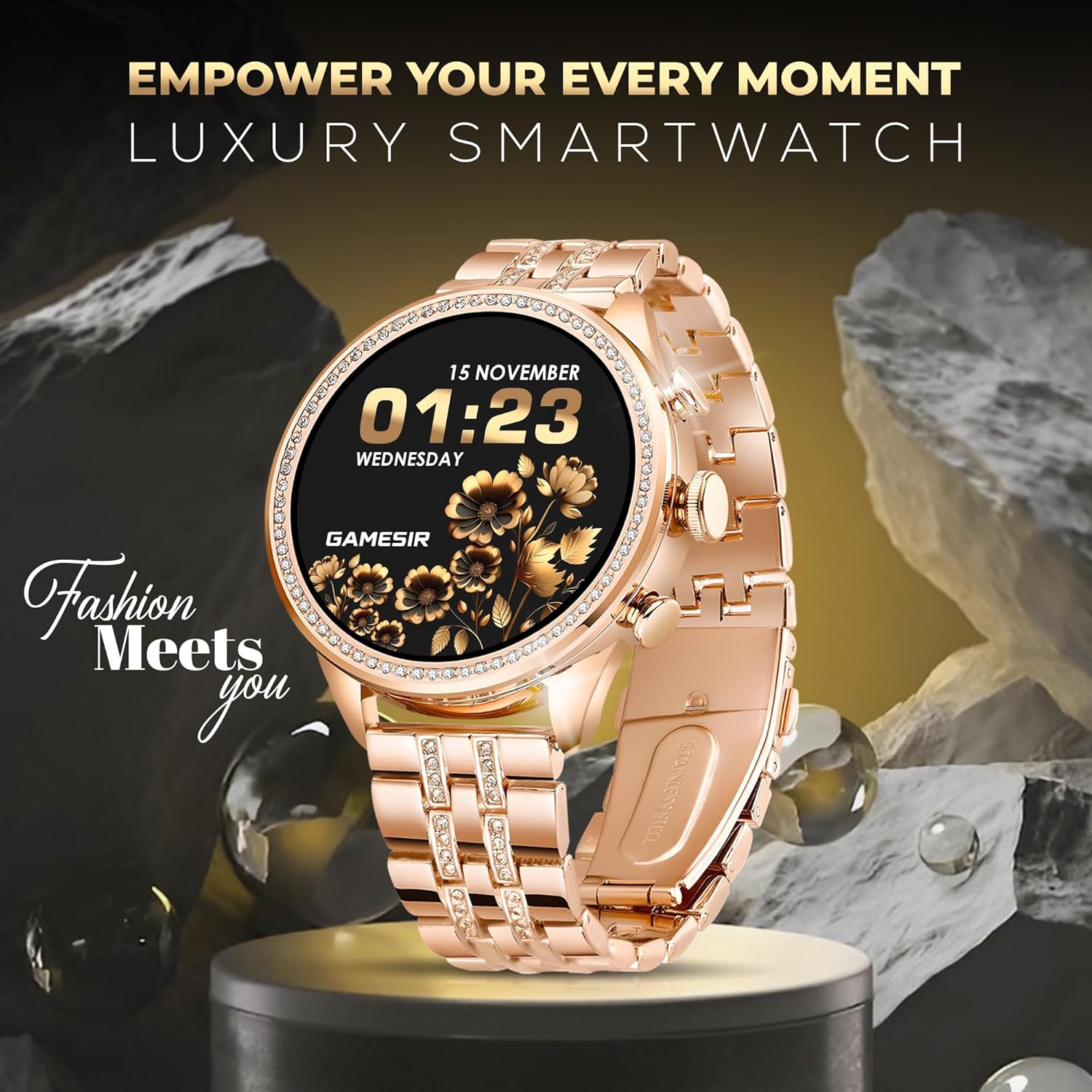 GameSir Genquella Premium Smartwatch for Women & Girls, Bluetooth Calling, 1.69” AMOLED HD Display, 100+ Fitness Modes, SPO₂ & Sleep Monitor, IP68 Waterproof, Stylish Design (Diamond Gold)