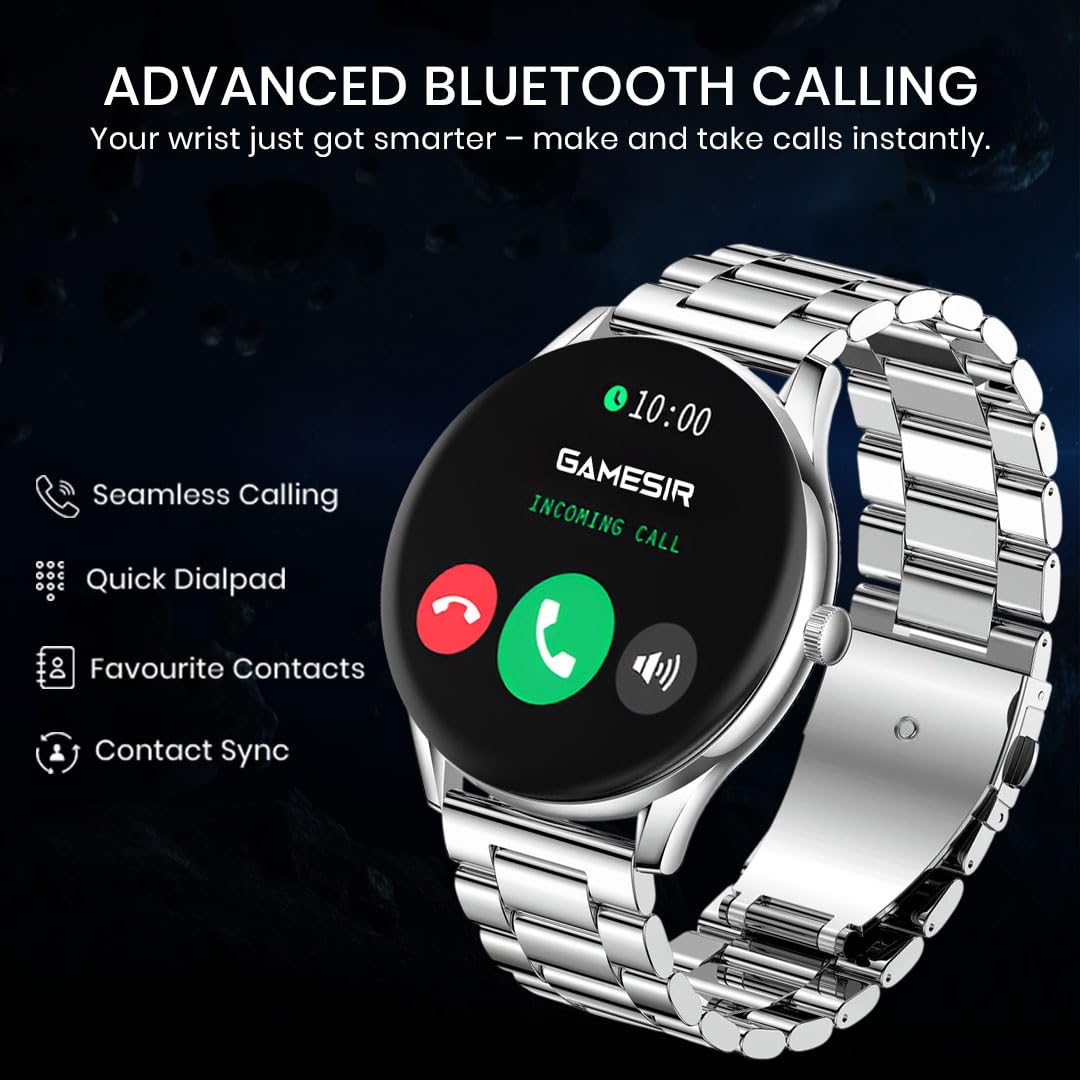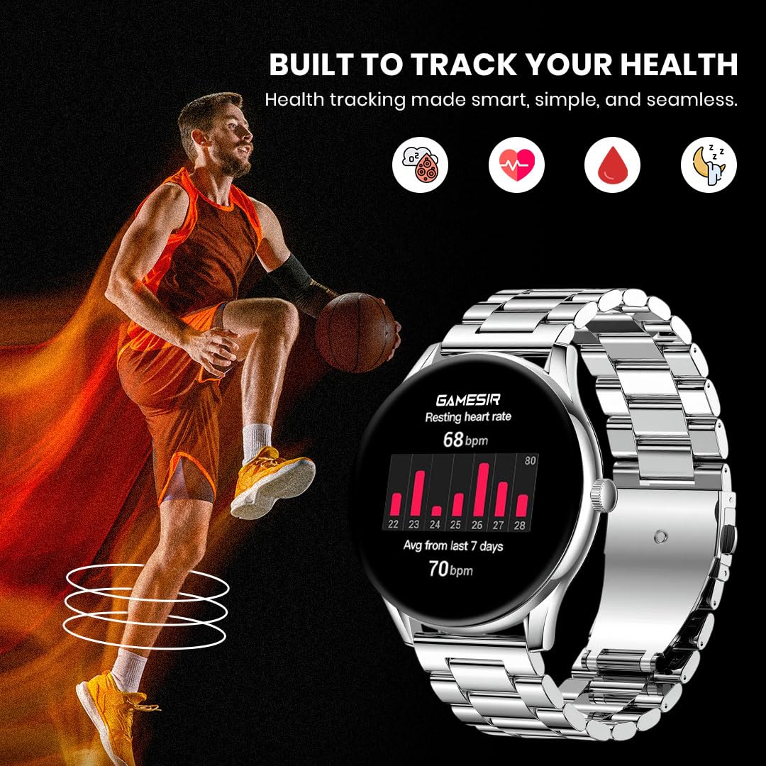 GameSir Glavito Round Dial Smartwatch with 1.49″ AMOLED Display, 100+ Sports Modes, IP67, Bluetooth Calling, Functional Crown Control, Health Tracking, 100+ Watch Faces for Men & Women (Metal Silver)
