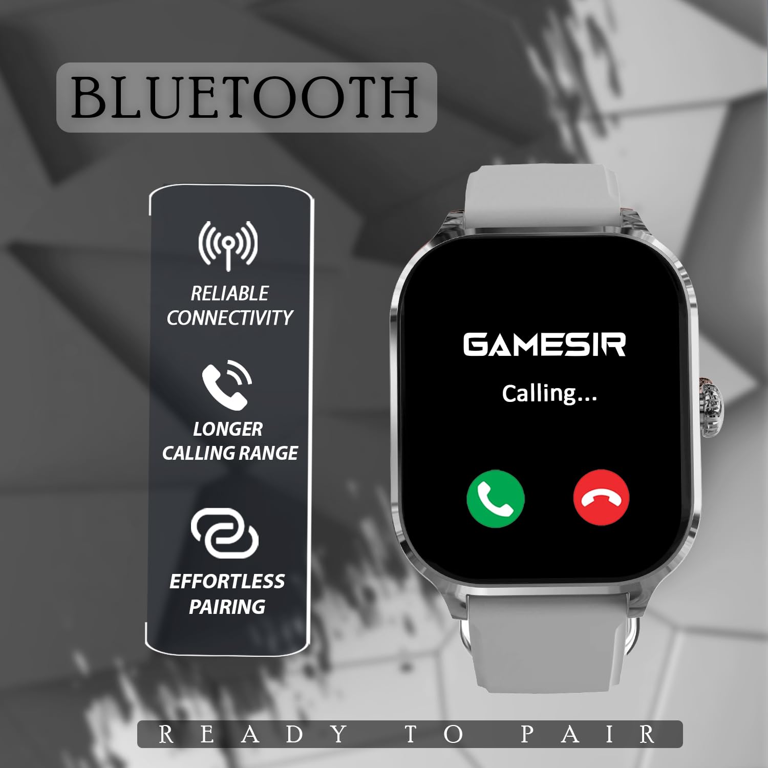 GameSir H18 Smartwatch with Long Battery Life, 2.01″ High-Resolution Screen, Bluetooth Calling, IP68 Waterproof, TFT Display, Luxury Design for Men & Women (Grey)