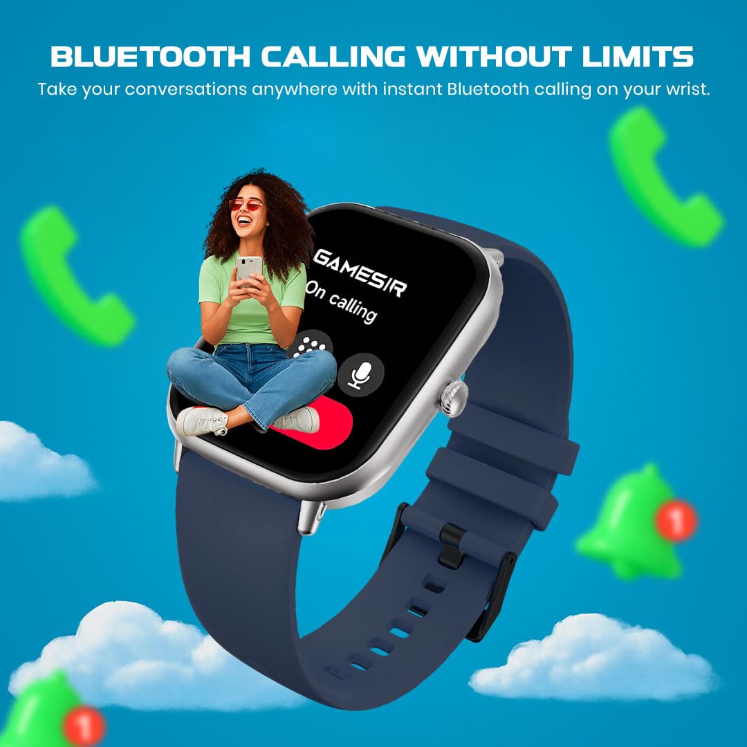 GameSir H9 Smartwatch – Big Display | Bluetooth Calling | Heart Rate & SpO2 Monitor | 100+ Sports Modes | Long Battery | IP68 Waterproof | TFT Display | Design for Men & Women (Dark Blue)