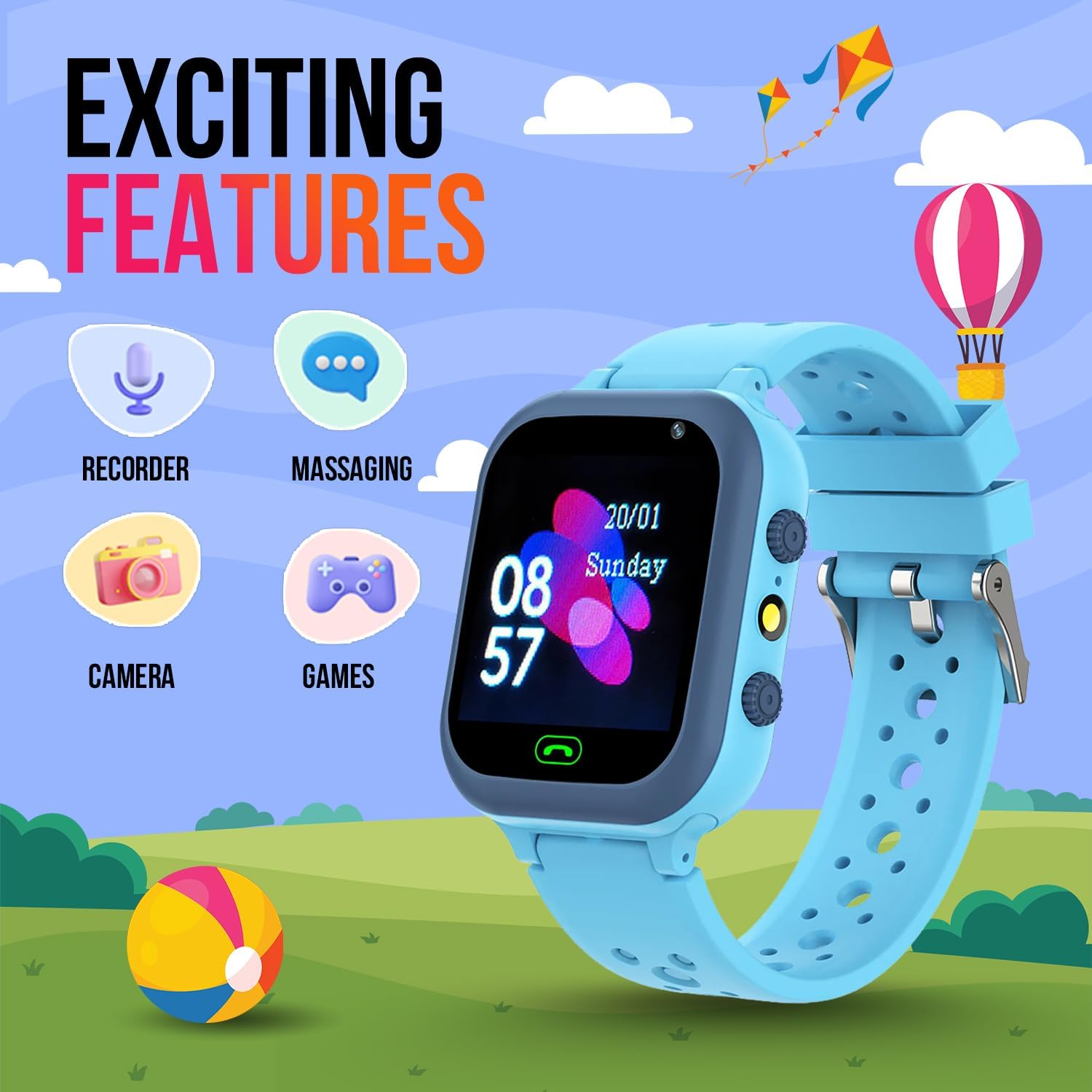 GameSir Q15 Kids Smart Watch 1.44″ TFT Display 3G / 4G SIM Support, Learning & Gaming Apps, Gifting Watch, Waterproof, GPS Tracking, Bluetooth Calling Features Smartwatch for Boys & Girls (Blue)