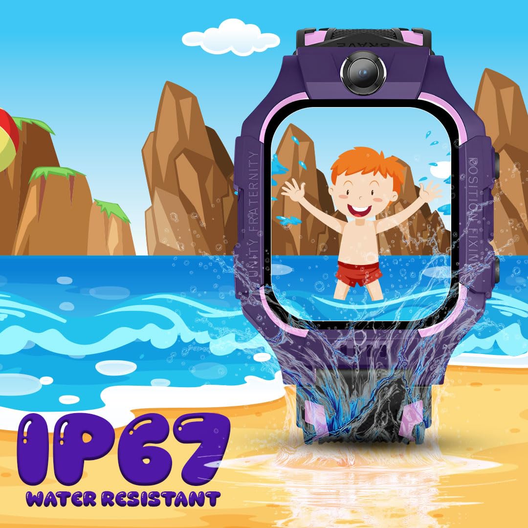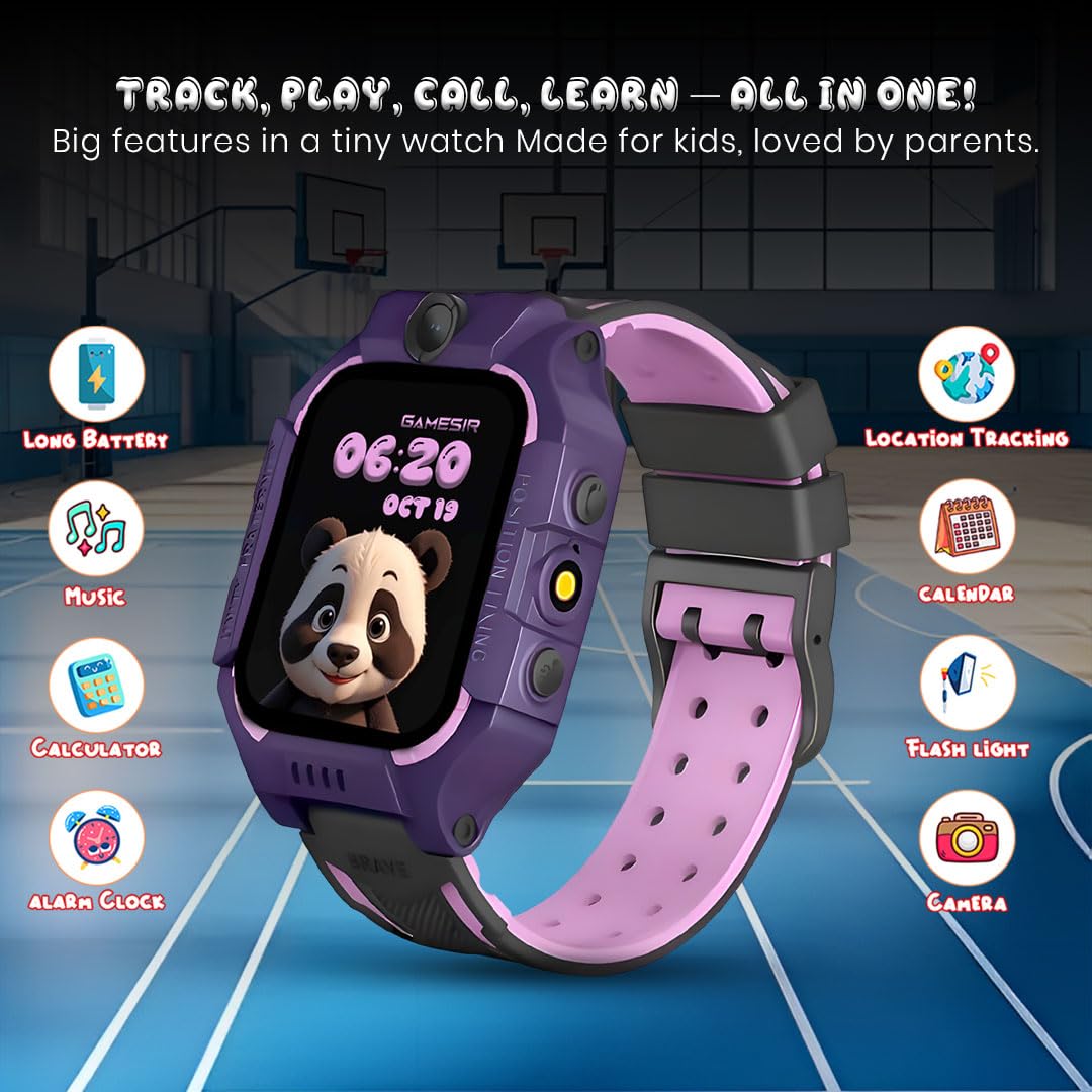 GameSir Q18 Kids Smart Watch, 2G/3G Connectivity, Voice Calling, GPS Tracker, Two-Way Calling, SOS Function, Camera & Water Rasistence, Smartwatch for Kids – Boys & Girls – (Purple)