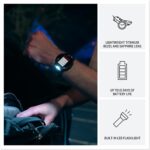 Our brightest AMOLED touchscreen display with button controls, a lightweight titanium bezel and sapphire lens, plus a built-in LED flashlight for greater awareness in the dark during early morning or late-night runs